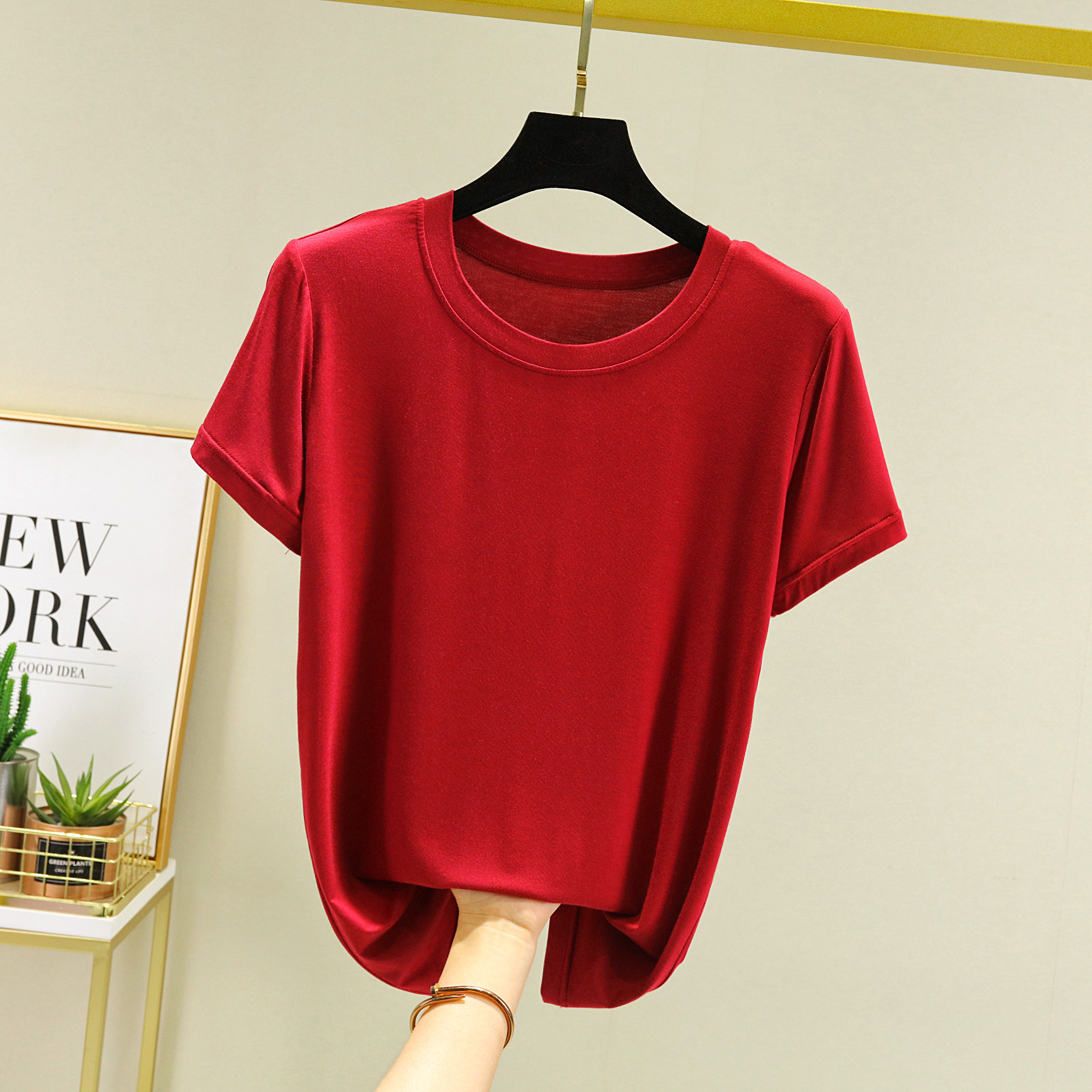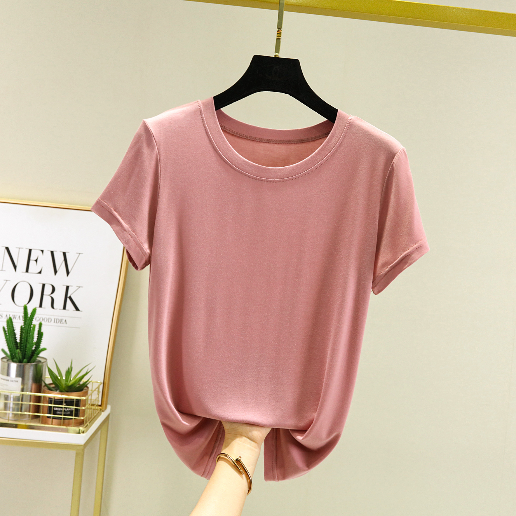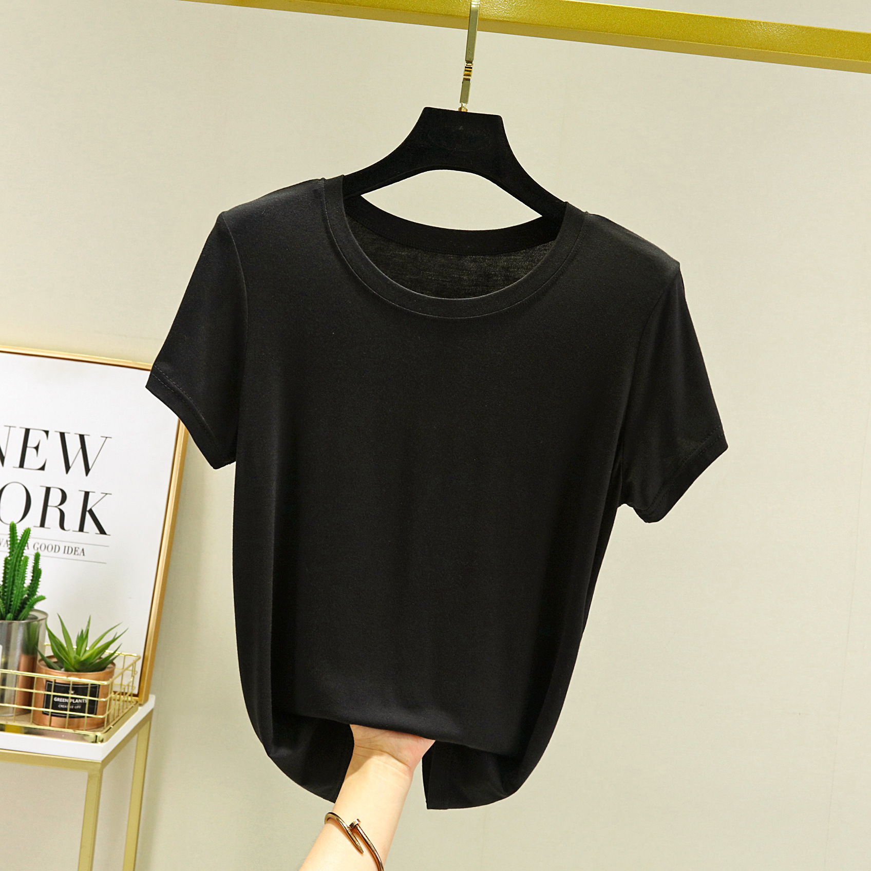 여름 새로운 비트 코튼 라운드 넥 짧은 소매 베이스 셔츠 기본 여성 탑 느슨한 심플 솔리드 컬러 티셔츠
