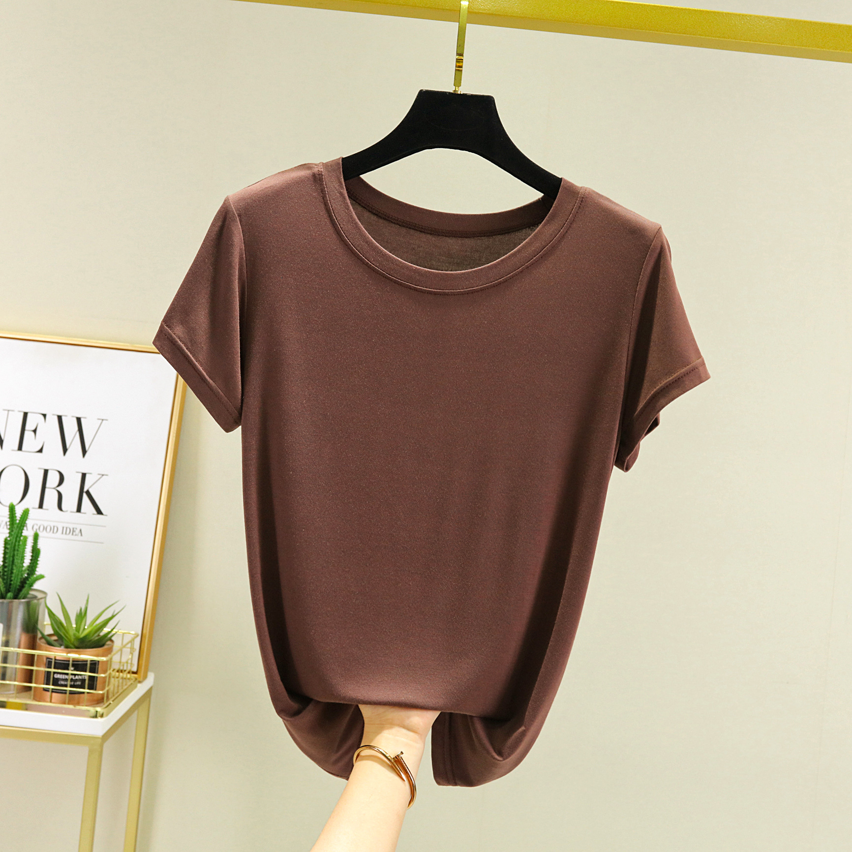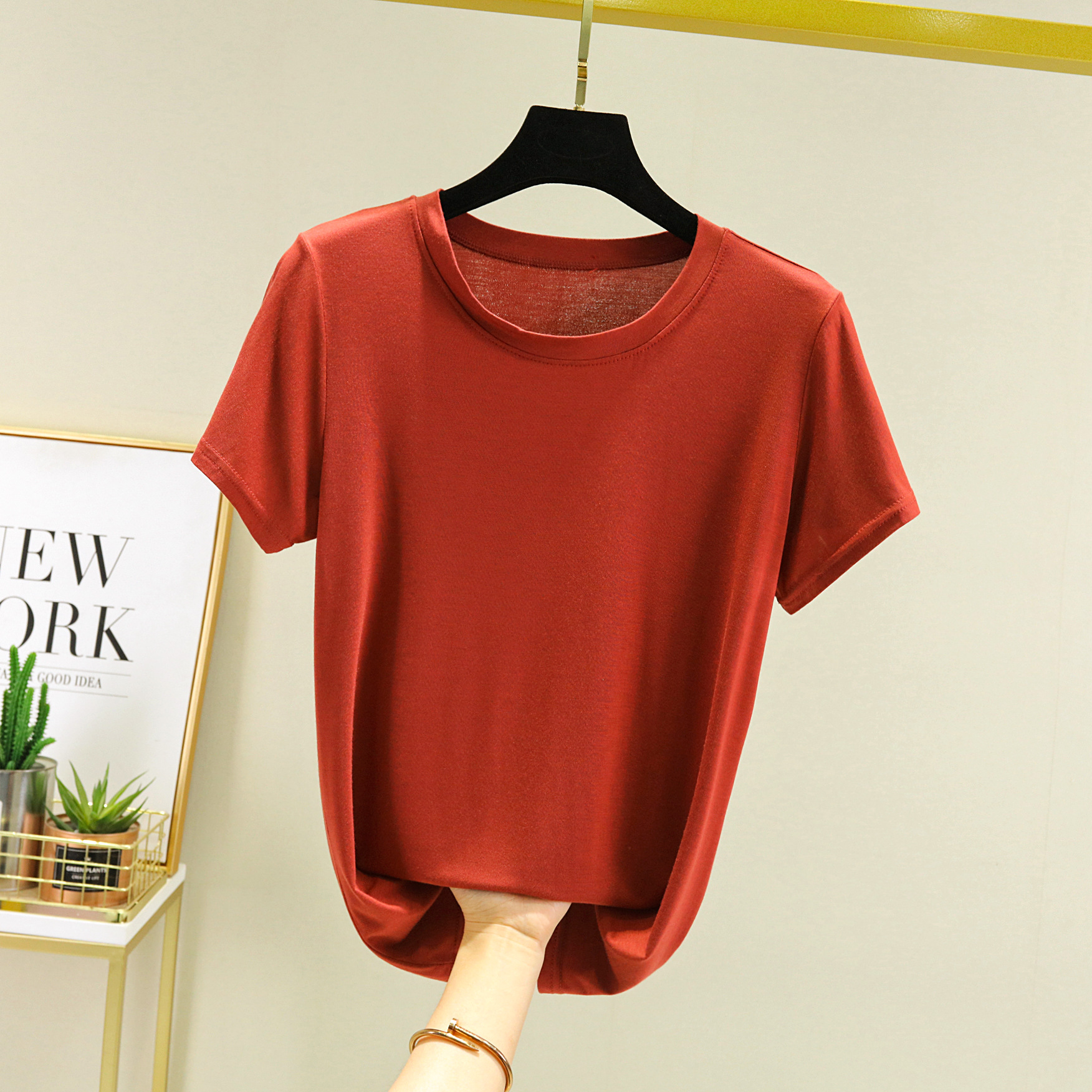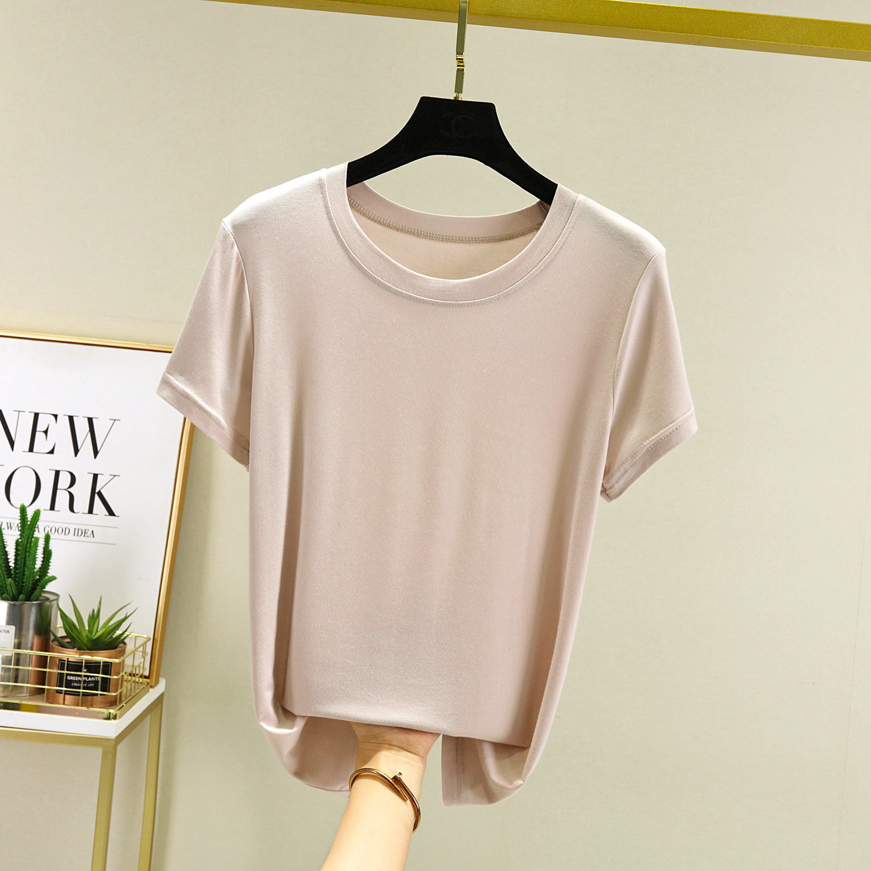 여름 새로운 비트 코튼 라운드 넥 짧은 소매 베이스 셔츠 기본 여성 탑 느슨한 심플 솔리드 컬러 티셔츠