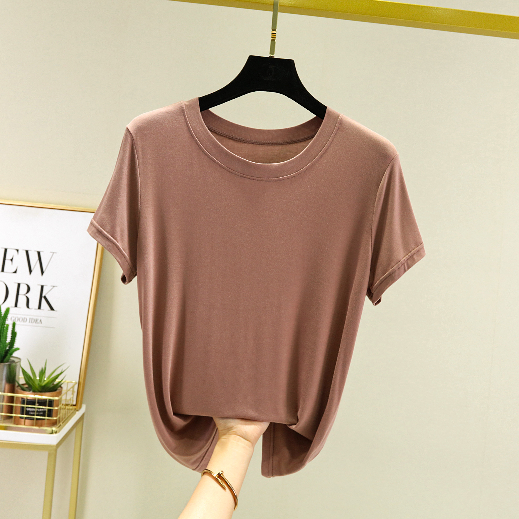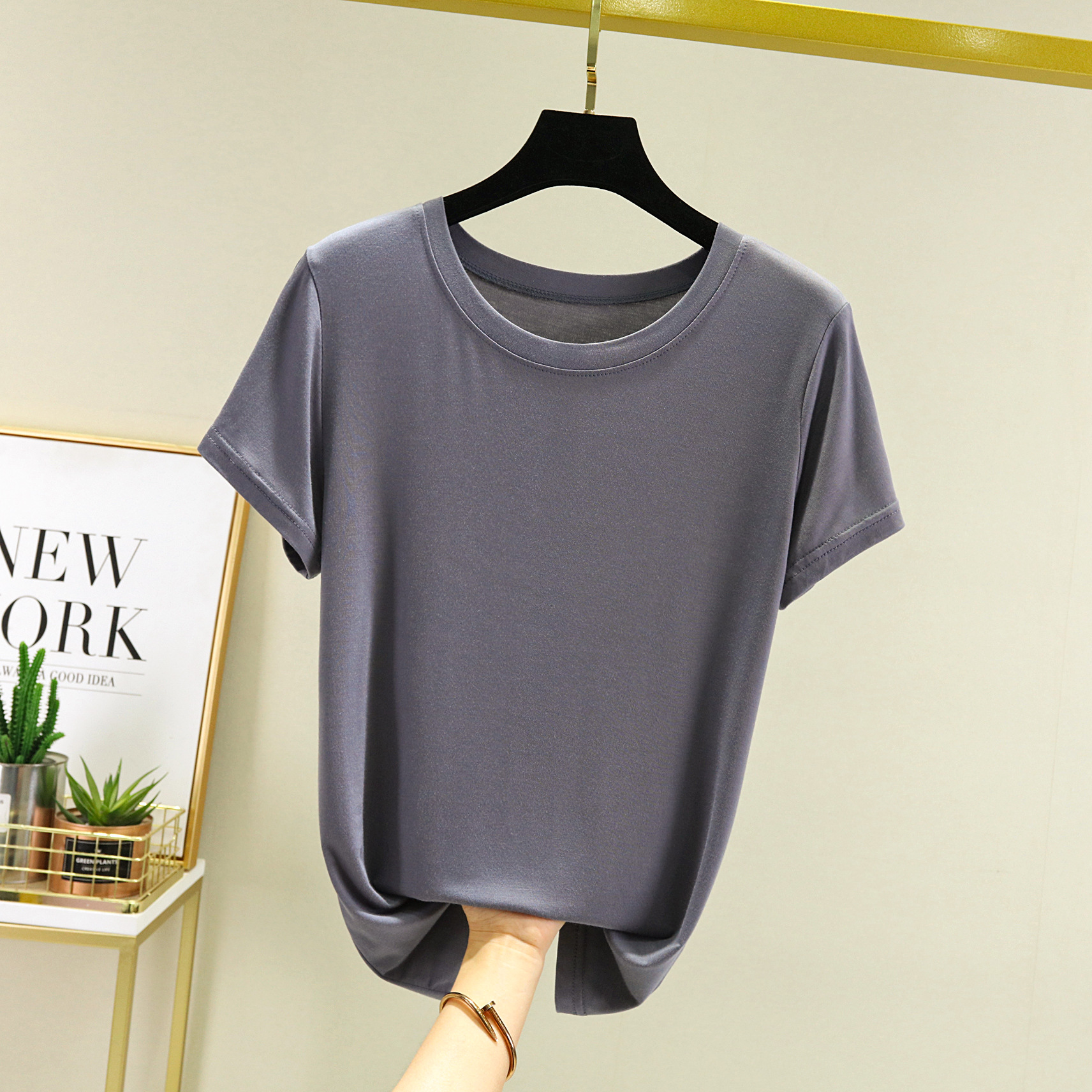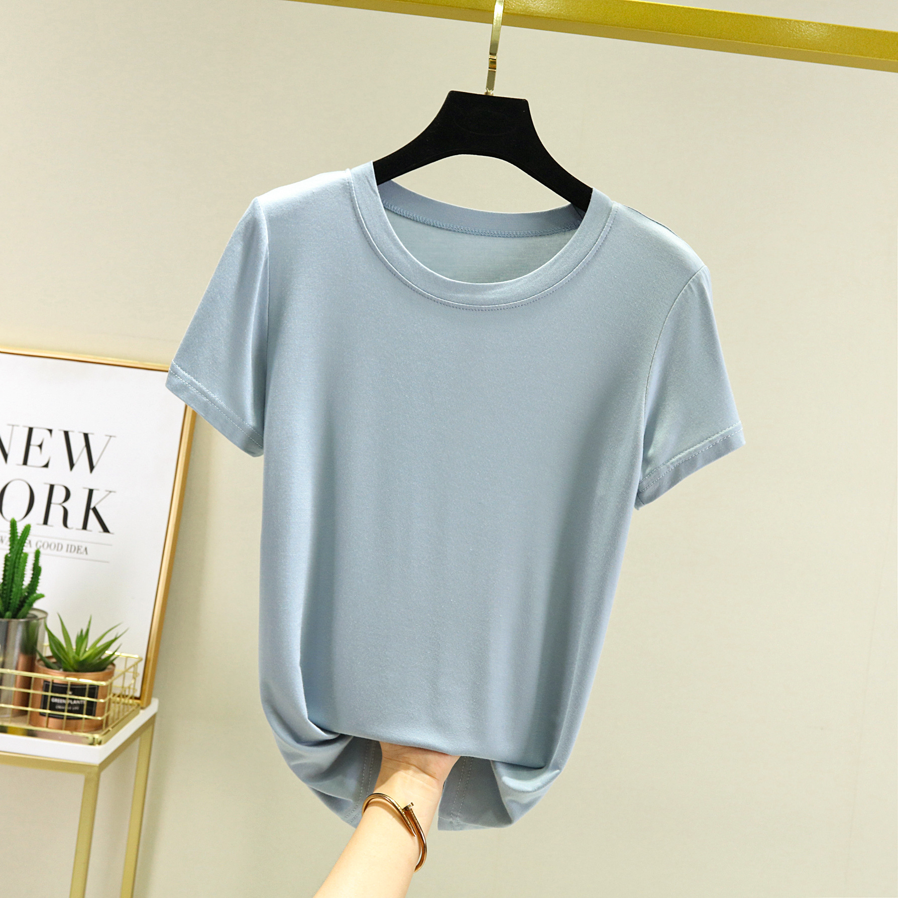 여름 새로운 비트 코튼 라운드 넥 짧은 소매 베이스 셔츠 기본 여성 탑 느슨한 심플 솔리드 컬러 티셔츠스토어 가기