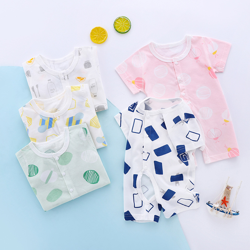 새로운 여름 0-2 세 면 아기 반팔 점프 슈트 신생아 등산 세트 뼈없는 바느질 하퍼 6 잠옷스토어 가기