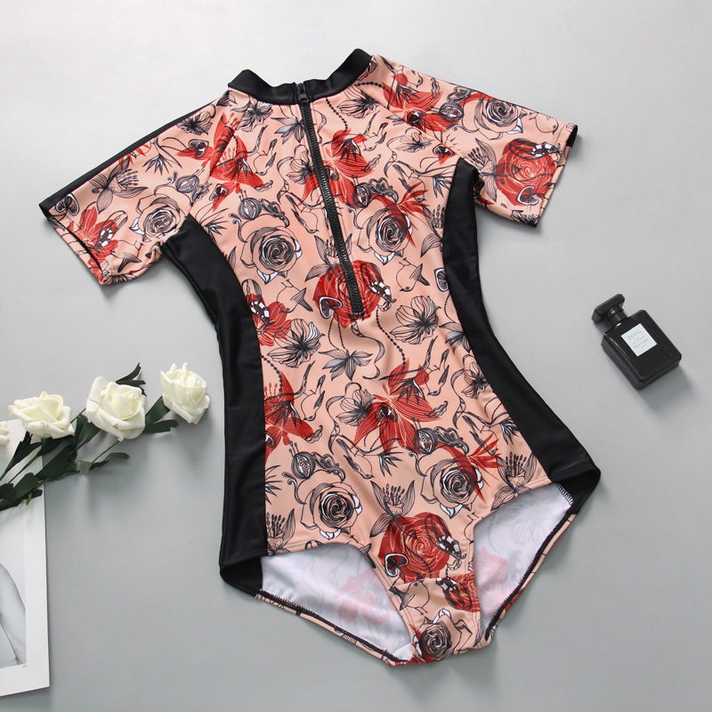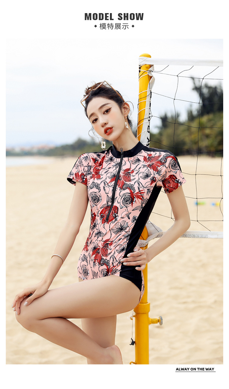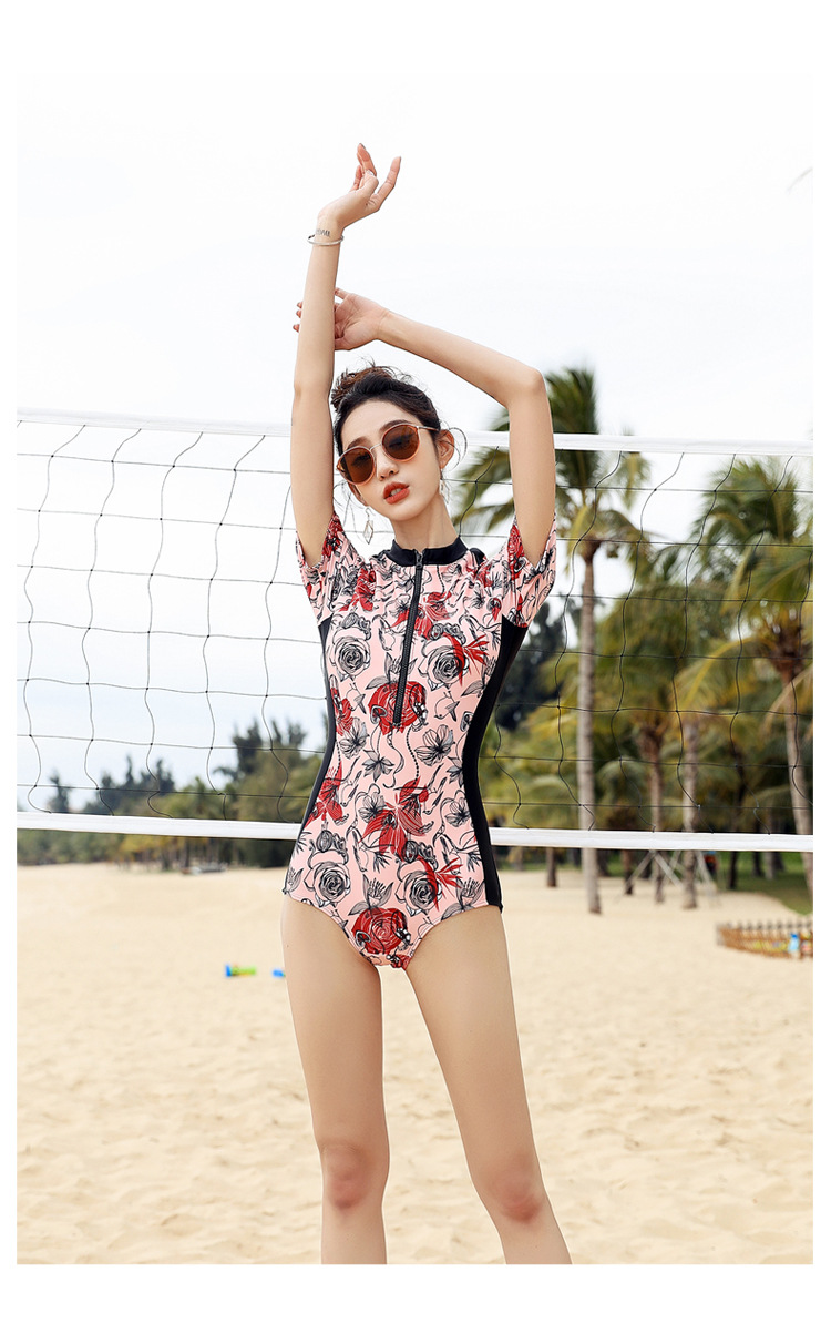 새로운 한국 원피스 수영복 여성용 배꼽 덮힌 슬리밍 보수적 삼각형 섹시한 반팔 자외선 차단제 트레이닝 스파 수영복