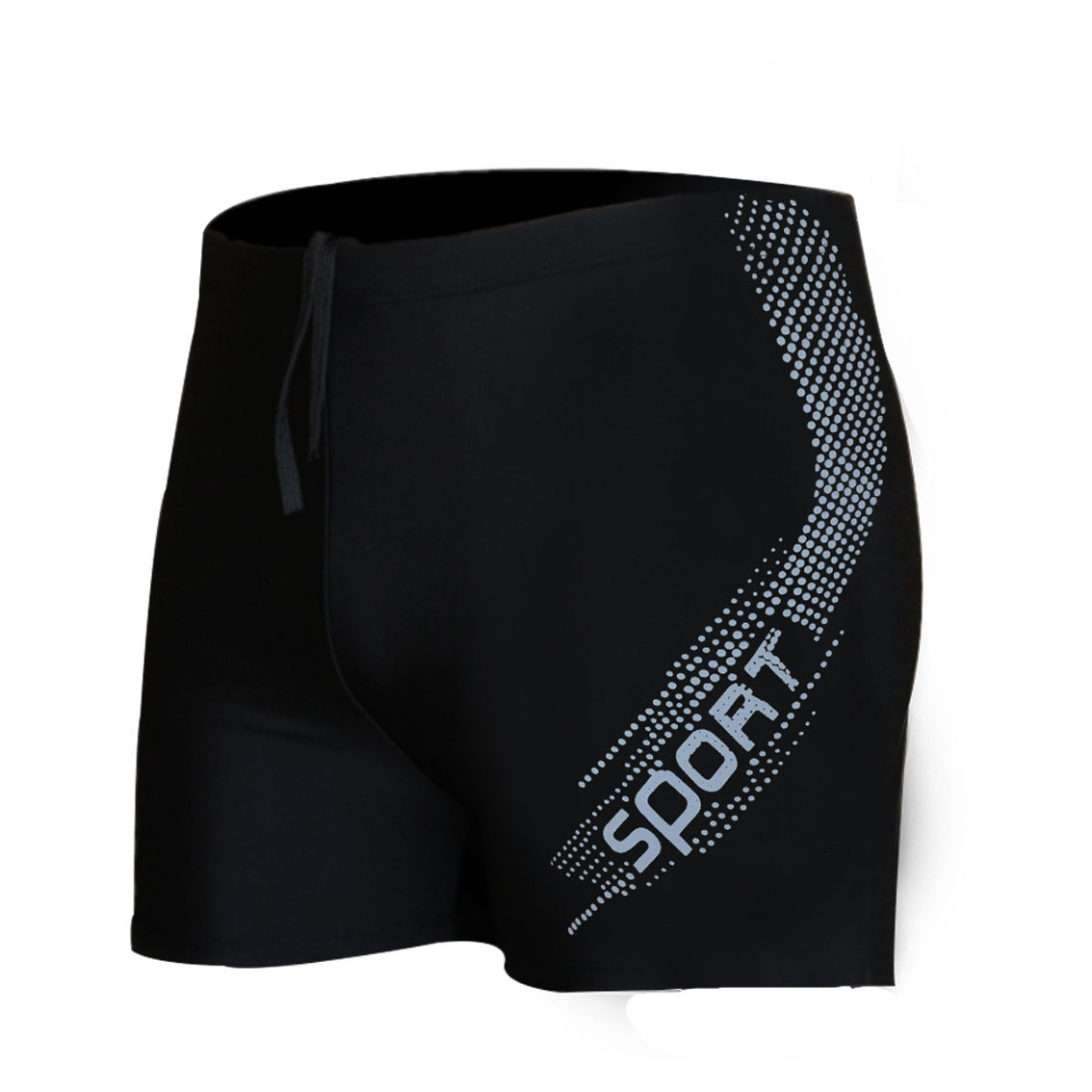 黑色男士泳裤印花男式平角游泳带抽绳训练简约松紧度假泳衣速干