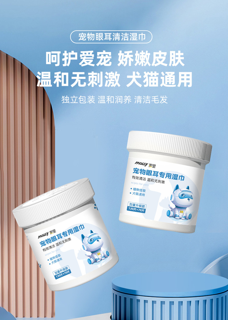 마일리 애완 동물 물티슈 130 고양이와 개 유니버설 티마크 눈과 귀 관리 깨끗한 몸 재고 도매
