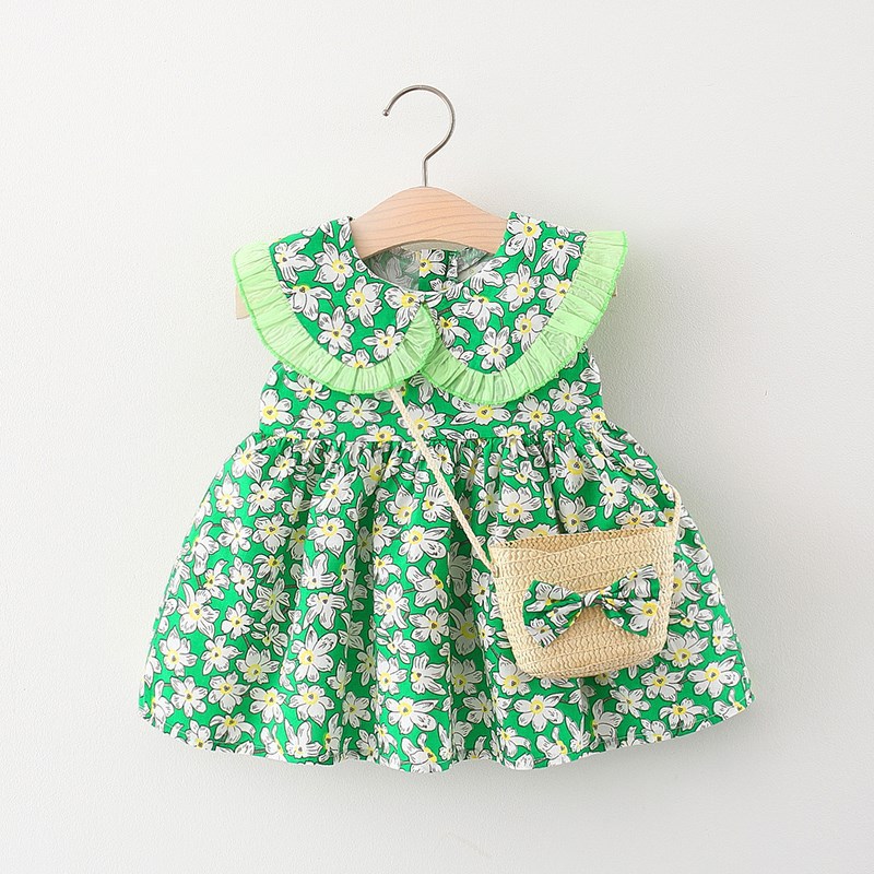 아동복 새로운 여아 여름 한국 스타일 원피스 여아 민소매 조끼 치마 작은 소녀의 면 공주 치마