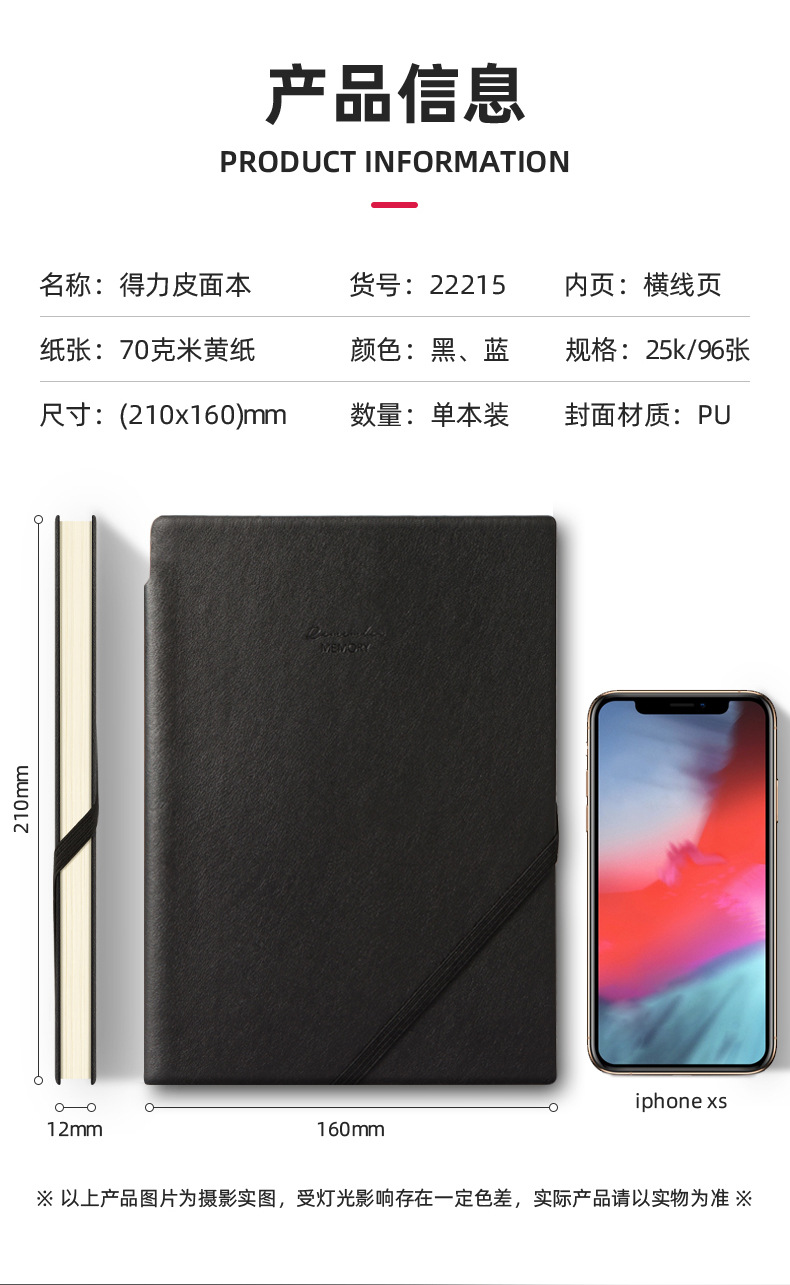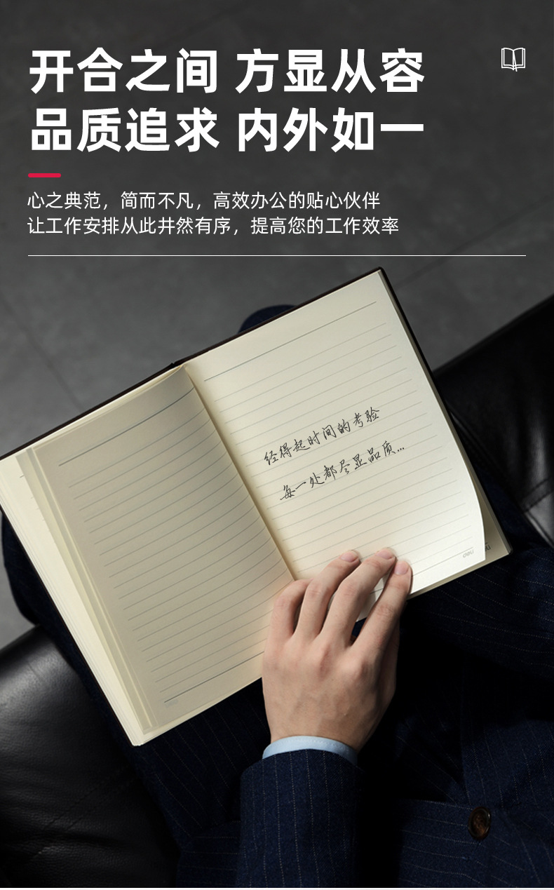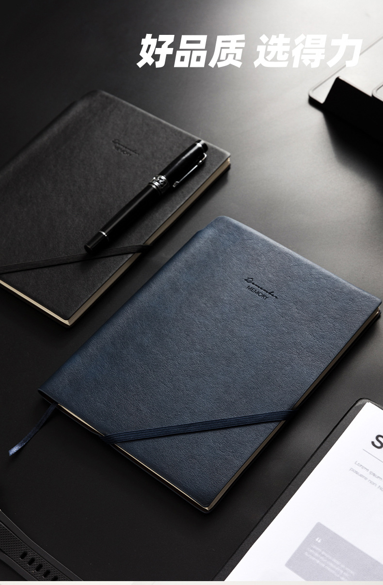 델리 22215 펜 삽입 사선 스트랩 PU 소재 25K 가죽 휴대용 비즈니스 노트북 가죽 메모장스토어 가기