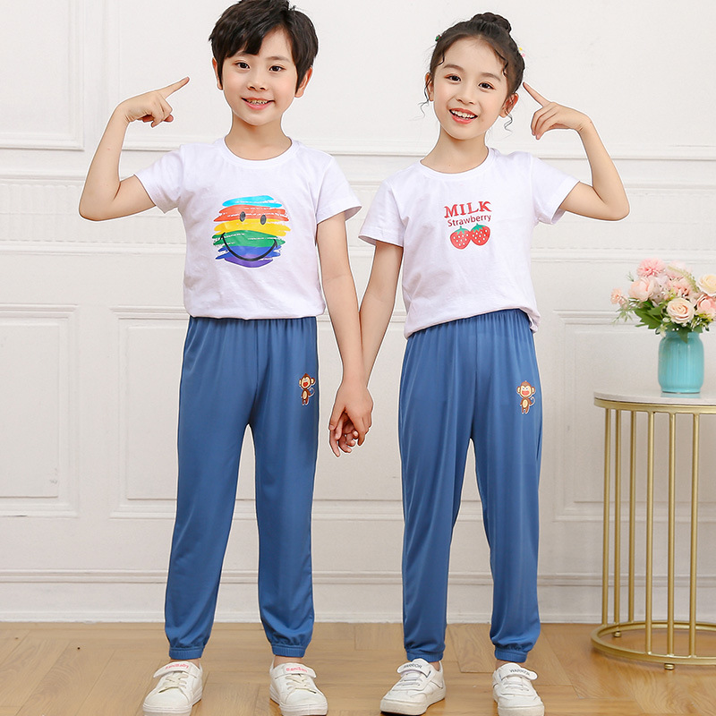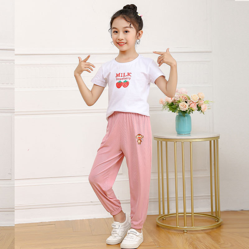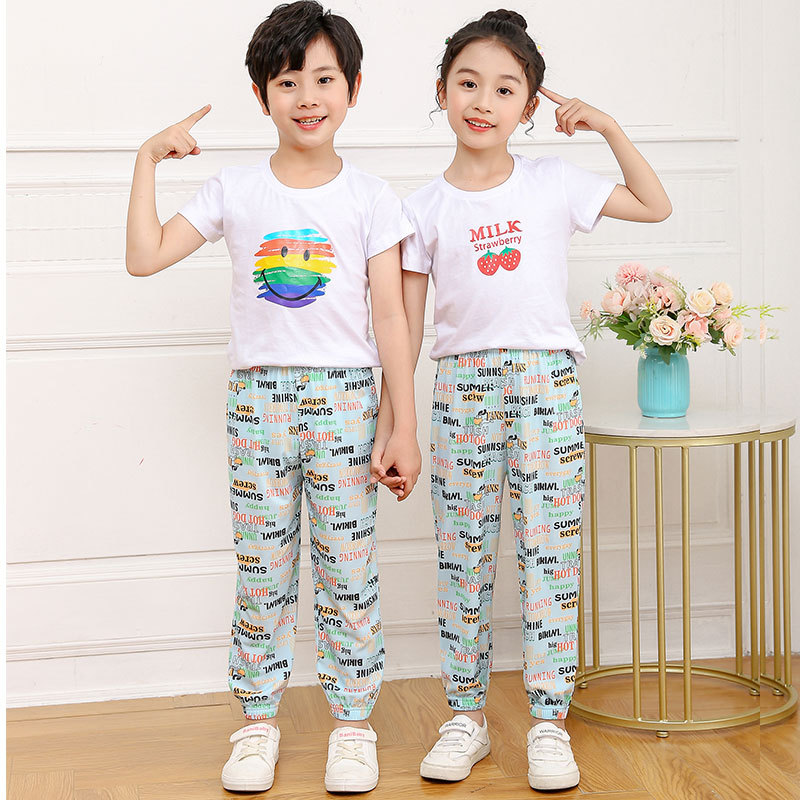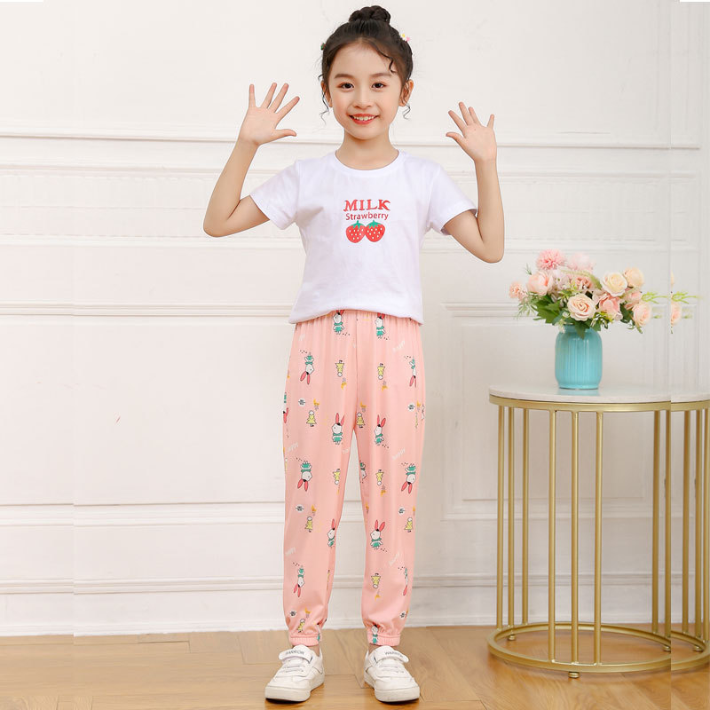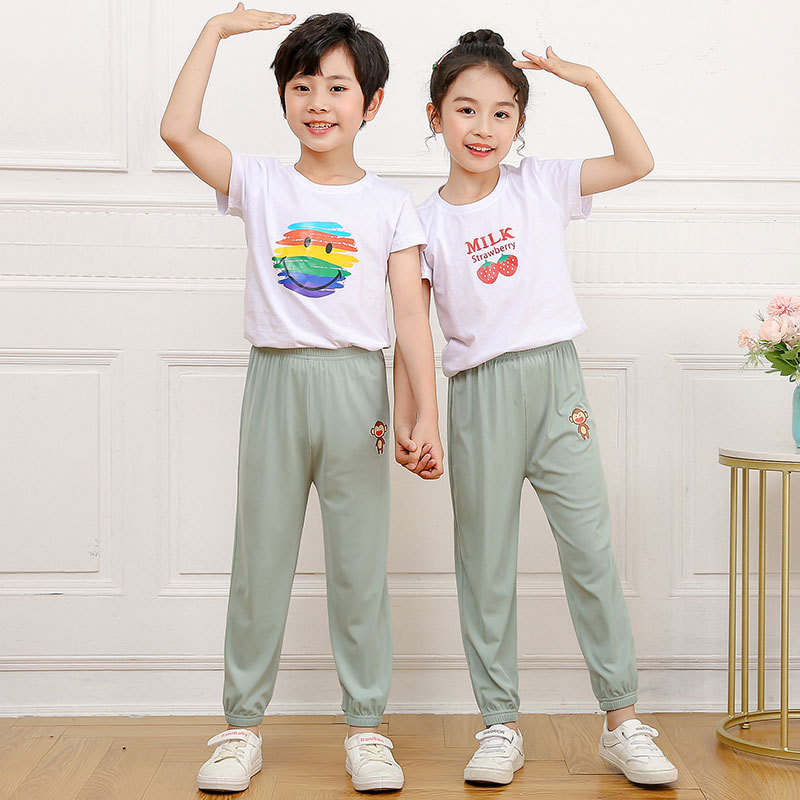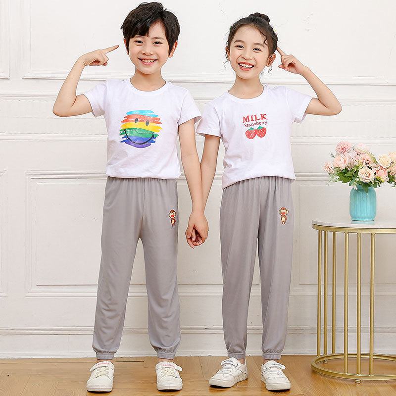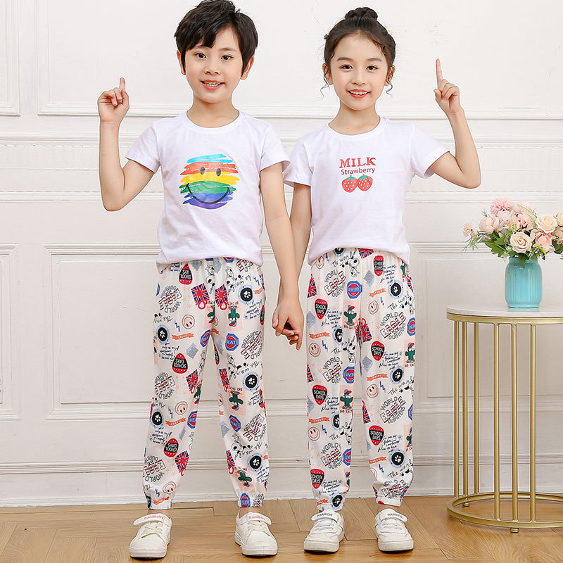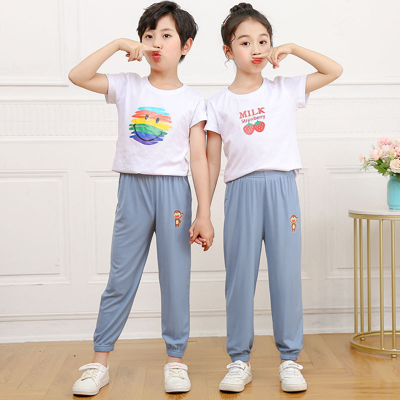 봄과 여름 시원한 캐주얼 바지 3-10 세 소년과 소녀 아이스 실크 모기 방지 바지 스포츠 바지스토어 가기
