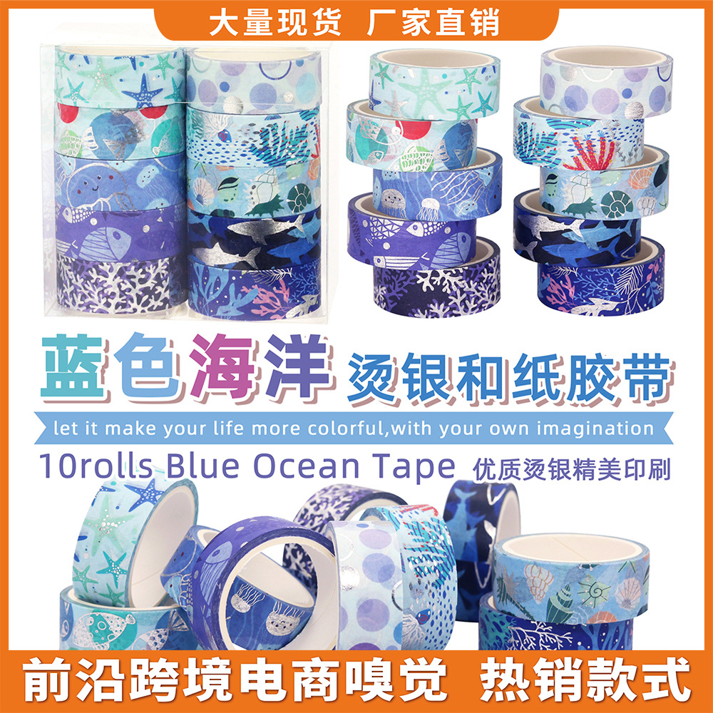공장 직접 공급 작은 신선한 바다 청동 및 종이 테이프 diy 손 계정 귀여운 국경 장식 세트스토어 가기