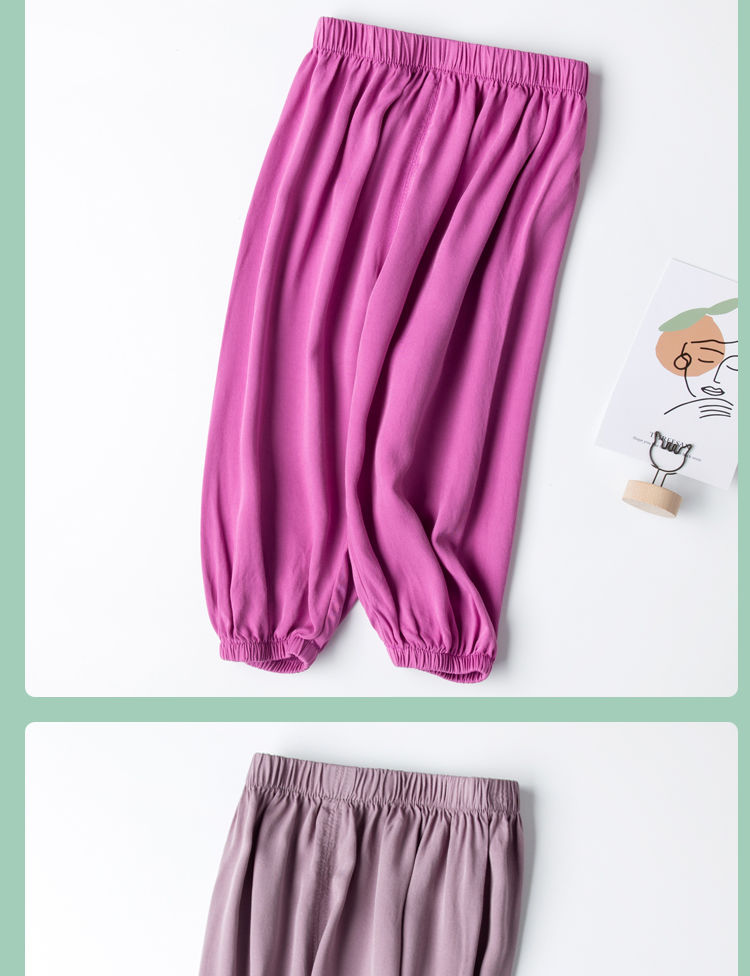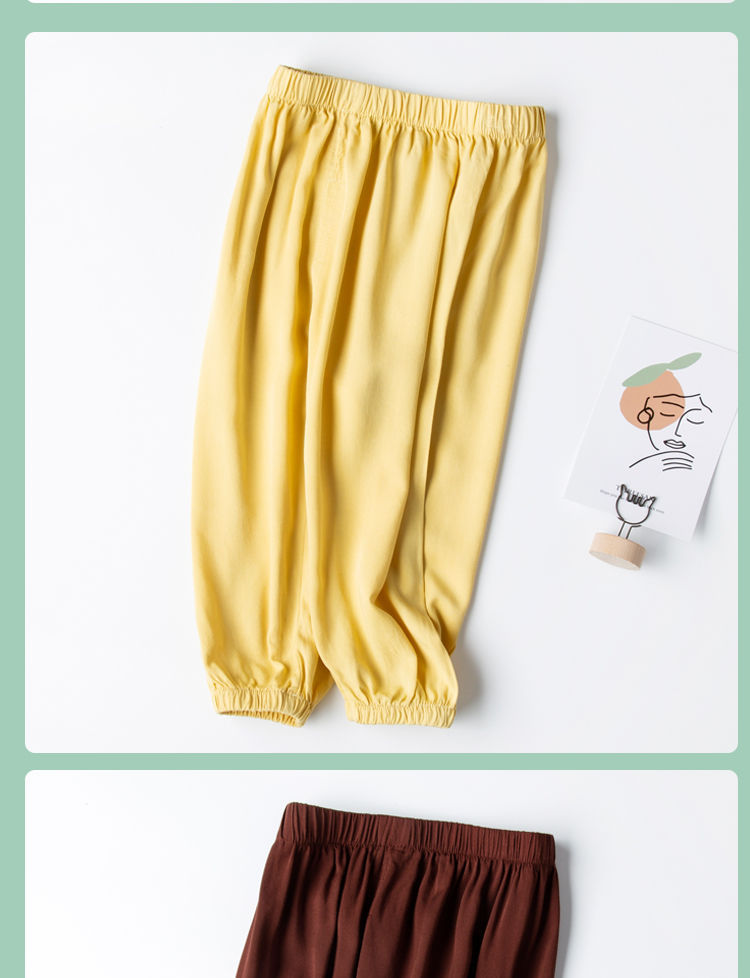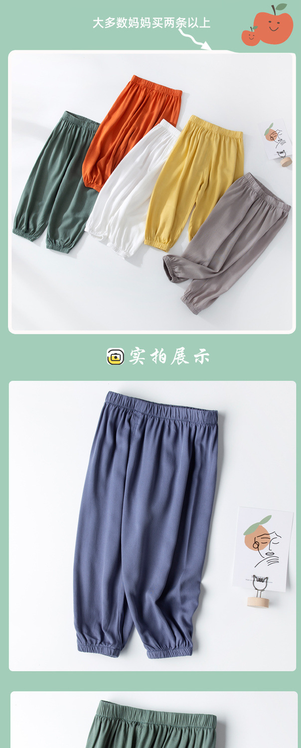 아기의 모기 방지 바지 여름 얇은 남성용 어린이 여름 아이스 실크 면 및 린넨 블루머 여성용 베이비 램 에어컨 바지