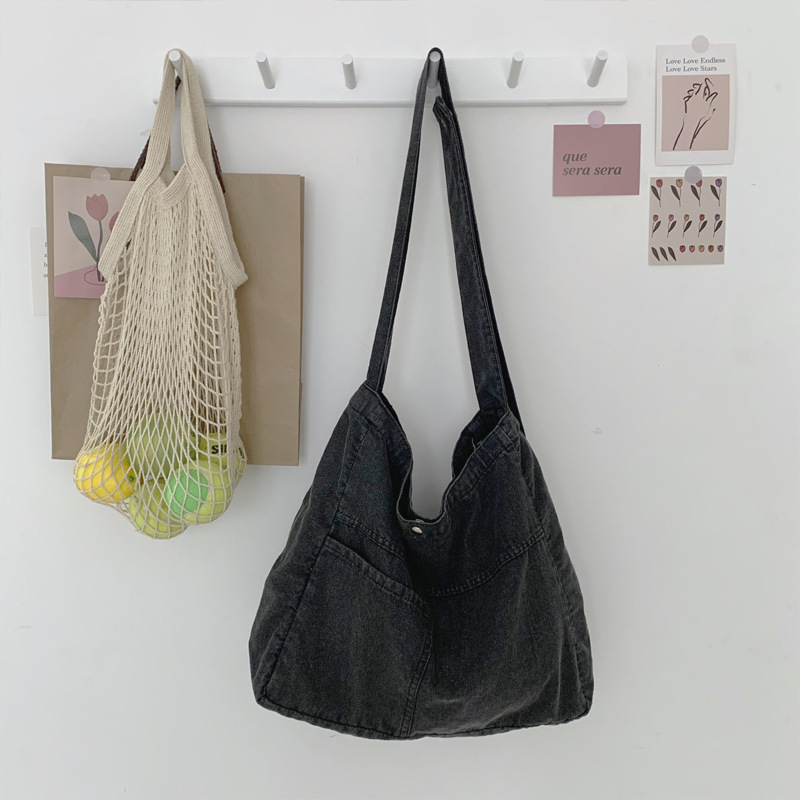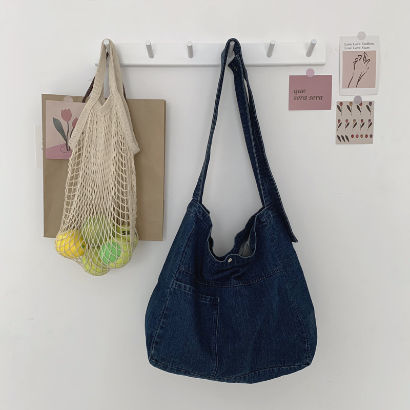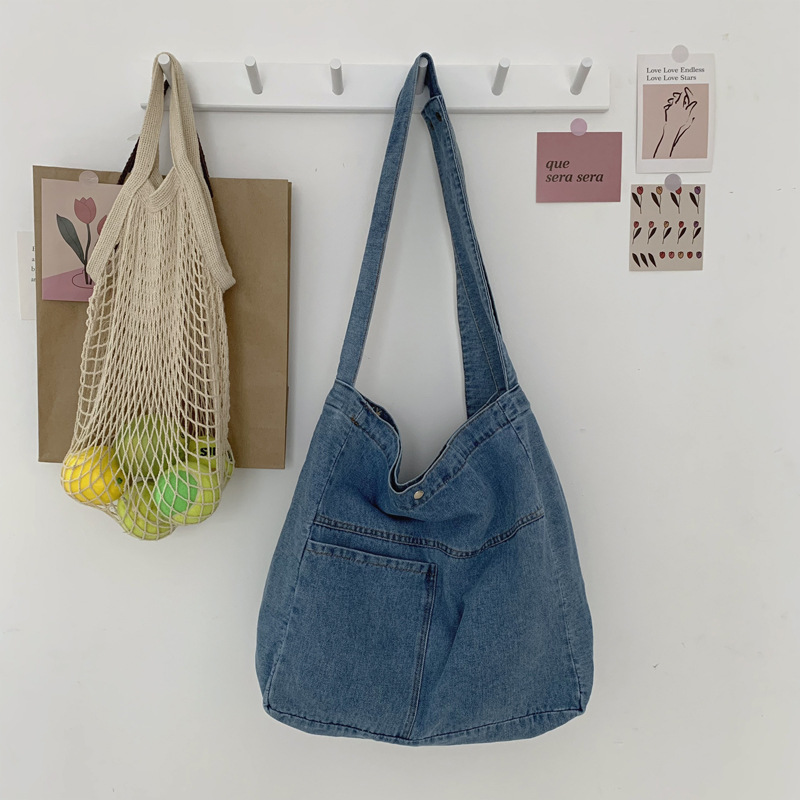 2026년 신상 일본풍 인스 스타일 데님 가방, 대용량 캔버스 크로스백, 여성 캐주얼 학생용 숄더백스토어 가기