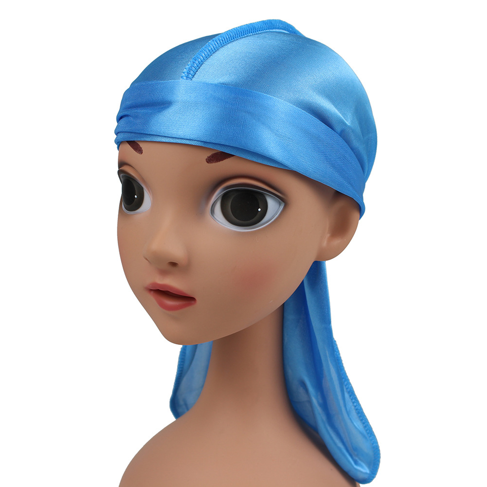 국경 간 뜨거운 판매 어린이 모조 실크 긴 꼬리 모자 모자 해적 모자 탄성 발가락 모자 Durag스토어 가기
