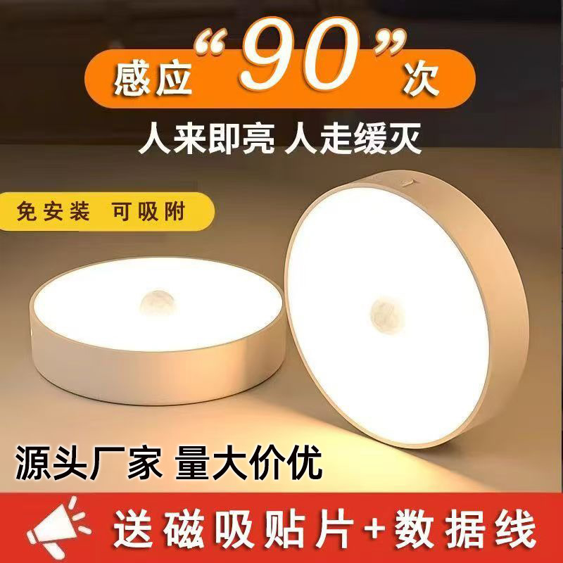 LED 센서 야간등 충전식 수면 침실 침대 옆등 인체 감지 원형 기숙사 센서 에너지 절약등스토어 가기