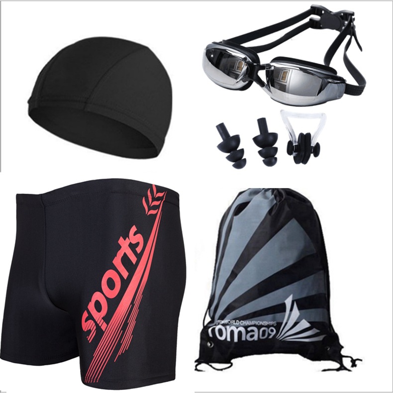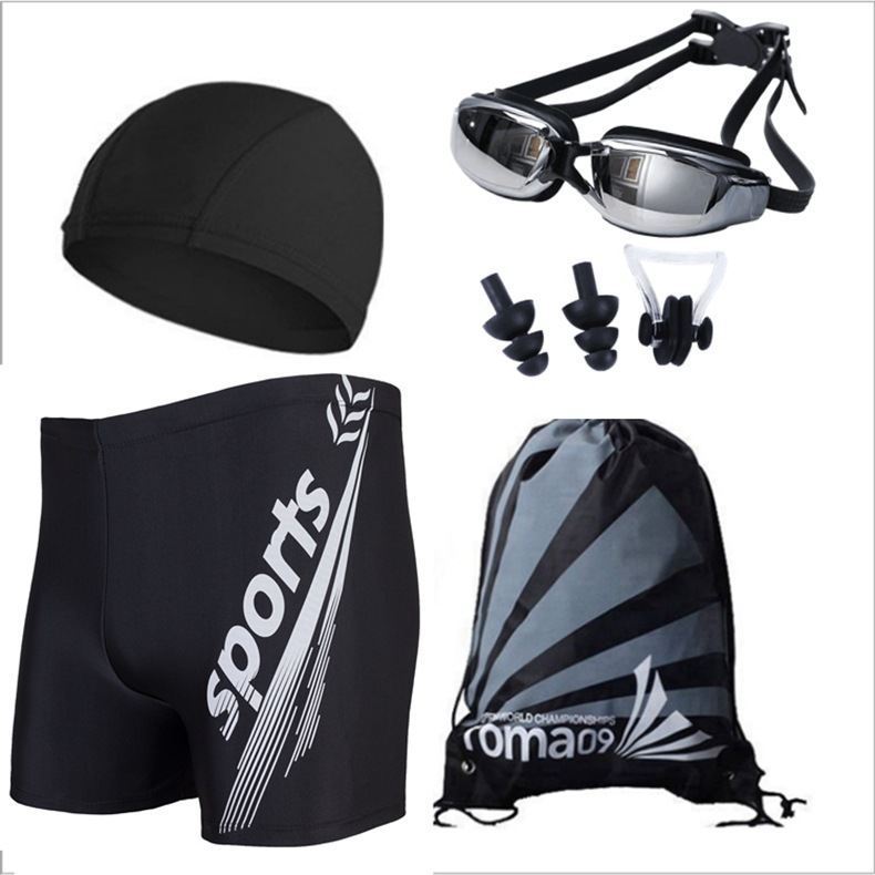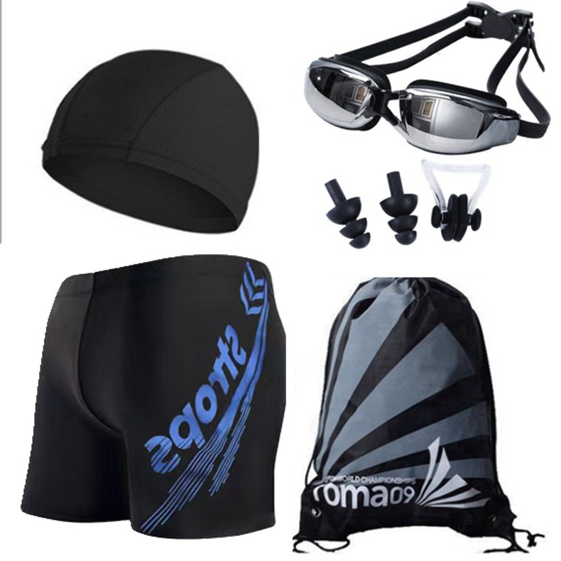 남자 수영 트렁크 폴리에스터 스파 복서 편안한 플러스 사이즈 성인 속건 슬림 핏 수영 트렁크 수영 모자 세트 크로스 보더스토어 가기