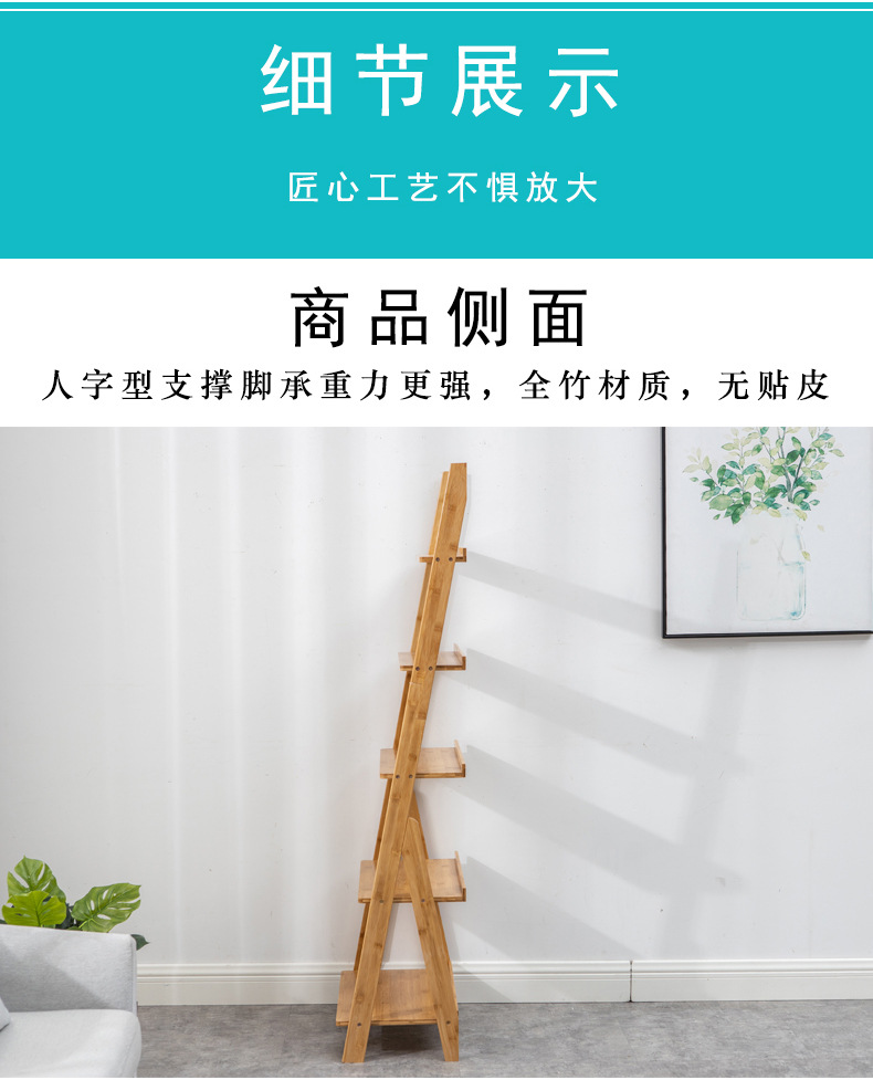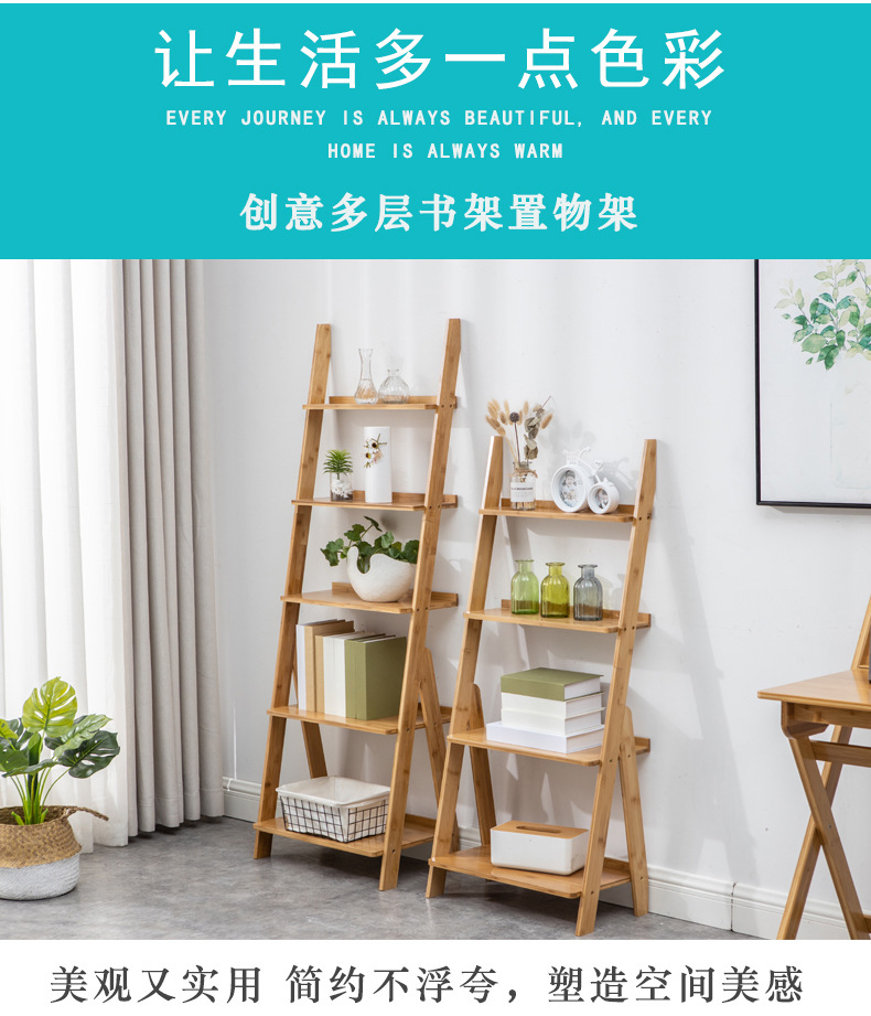 사다리꼴 보관 랙 벽 책장 다층 거실 침실 대나무 선반 바닥 꽃 선반 보관 랙 단단한 나무 보관 랙스토어 가기