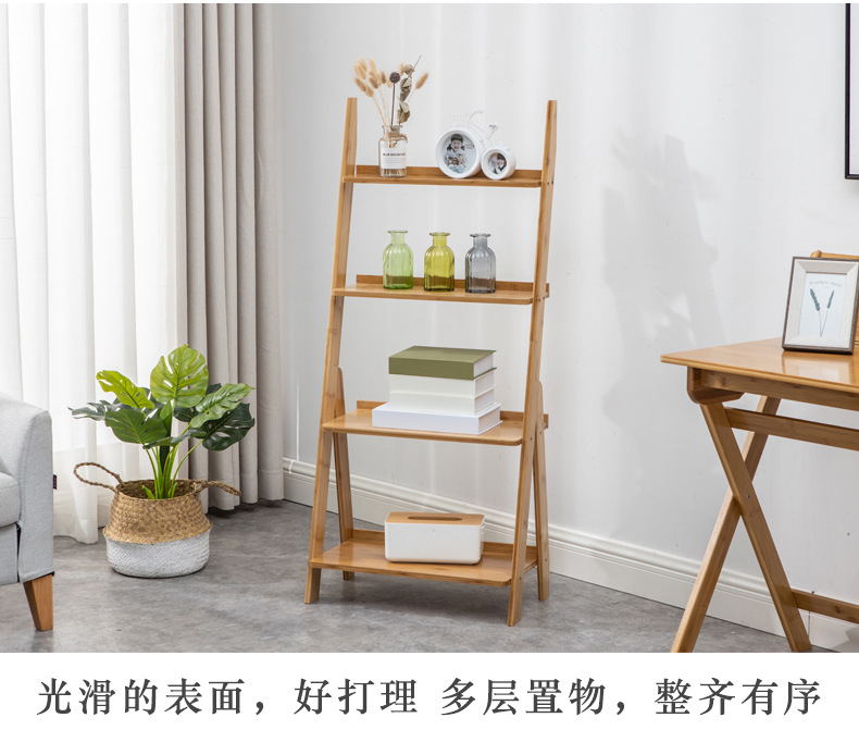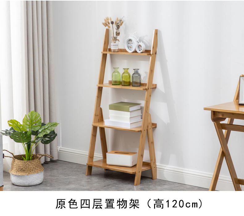 사다리꼴 보관 랙 벽 책장 다층 거실 침실 대나무 선반 바닥 꽃 선반 보관 랙 단단한 나무 보관 랙
