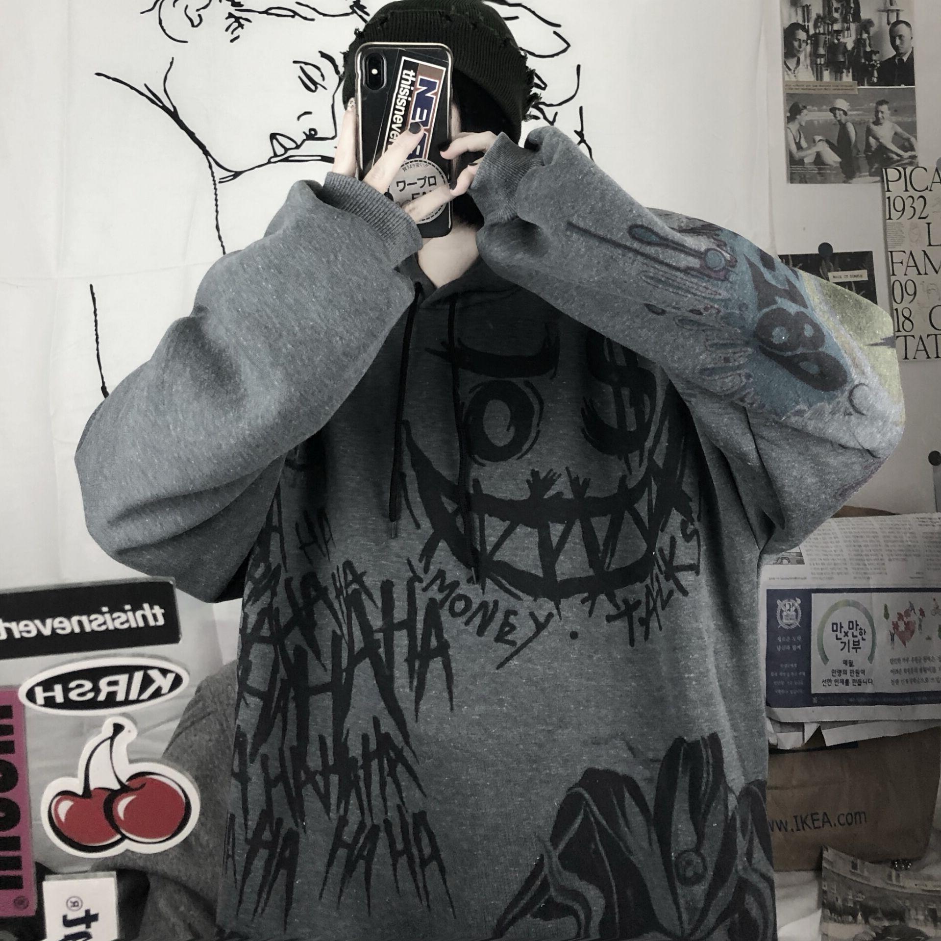 낙서 Dawei 기모 봄 가을과 겨울 새로운 인쇄 후드 스웨터 학생 한국 스타일 유행 느슨한 양털 탑