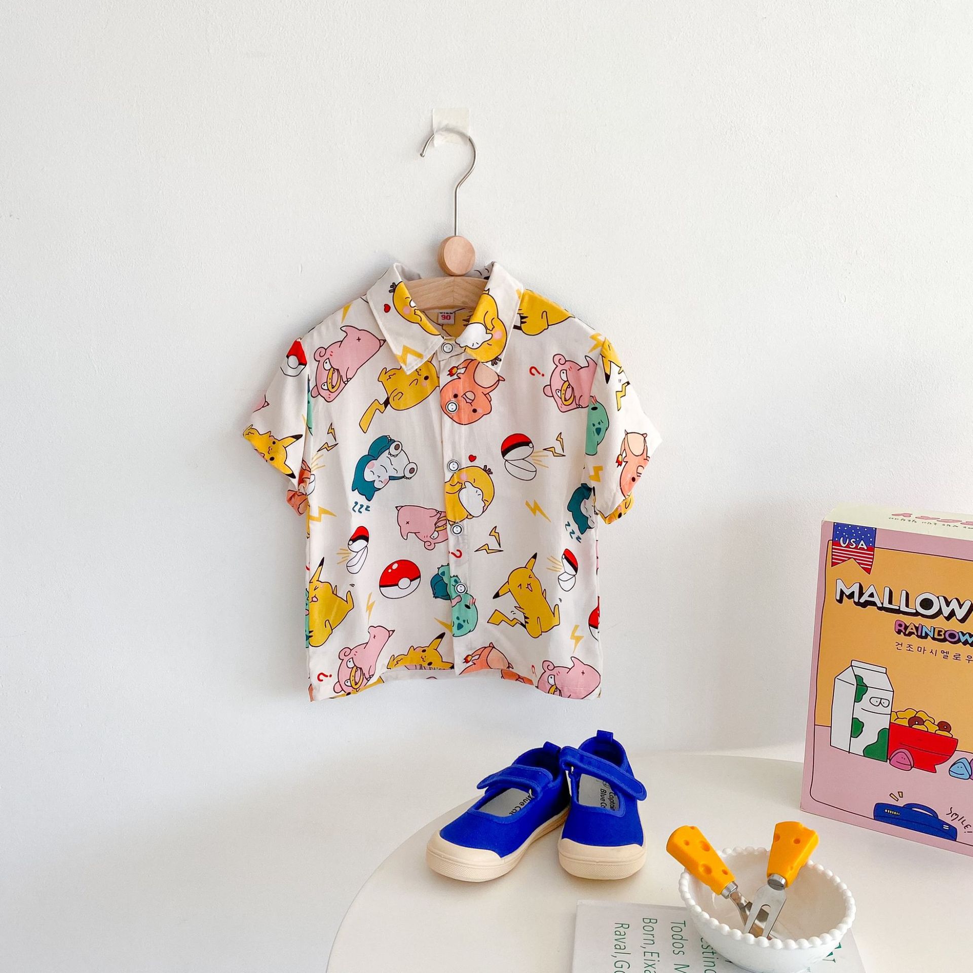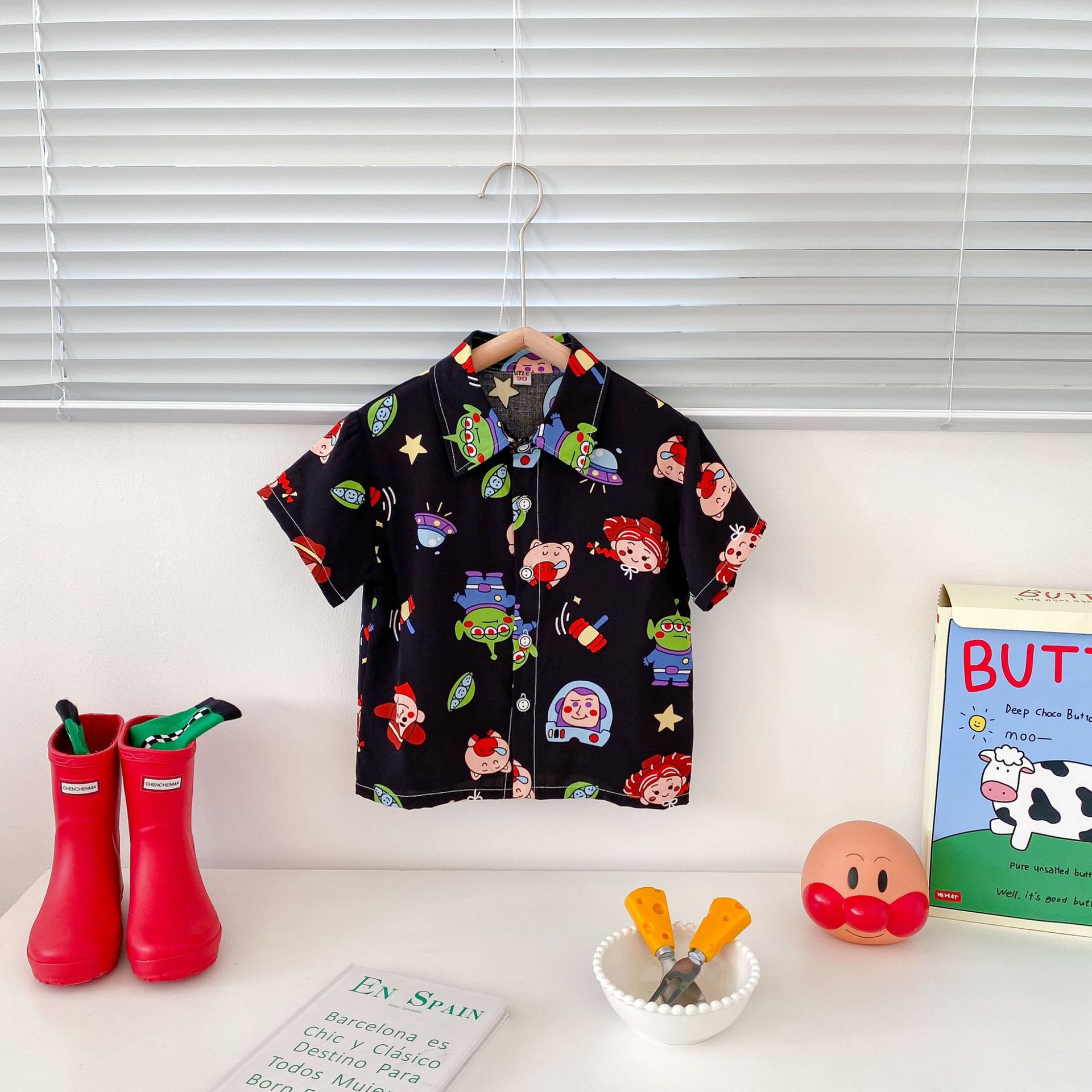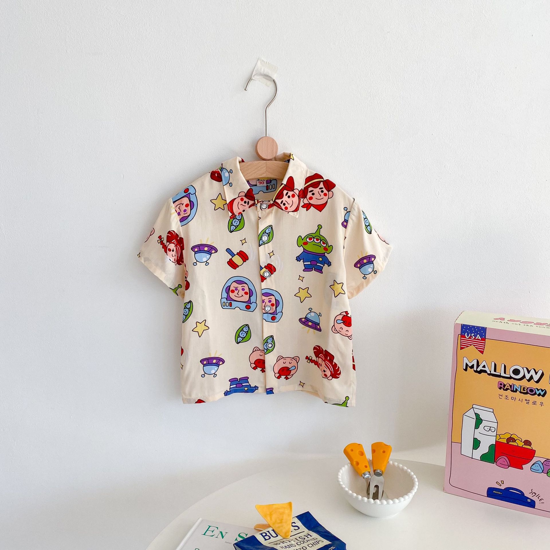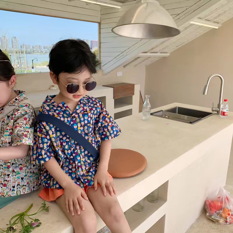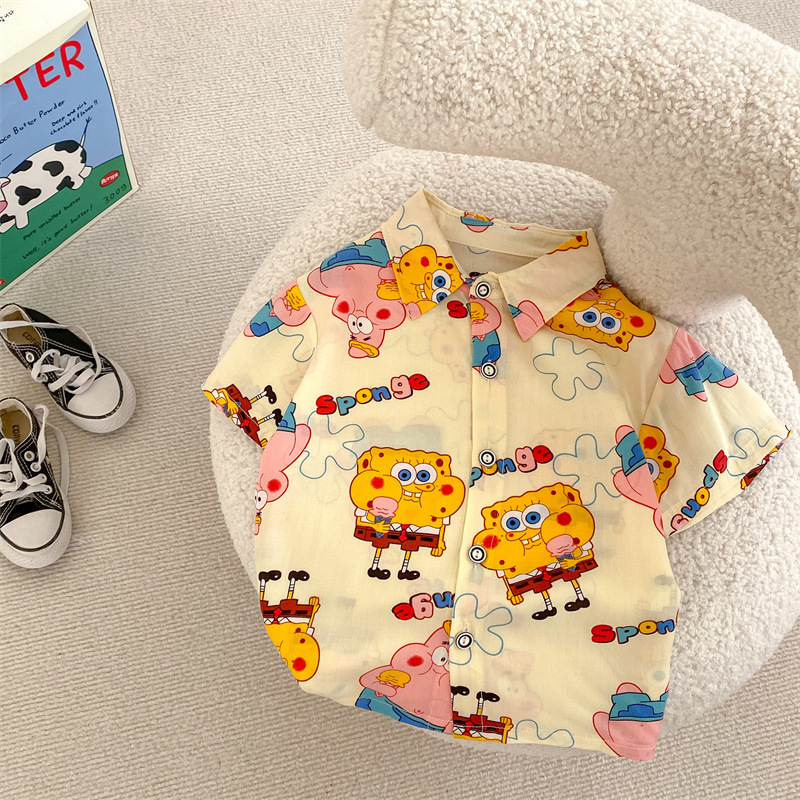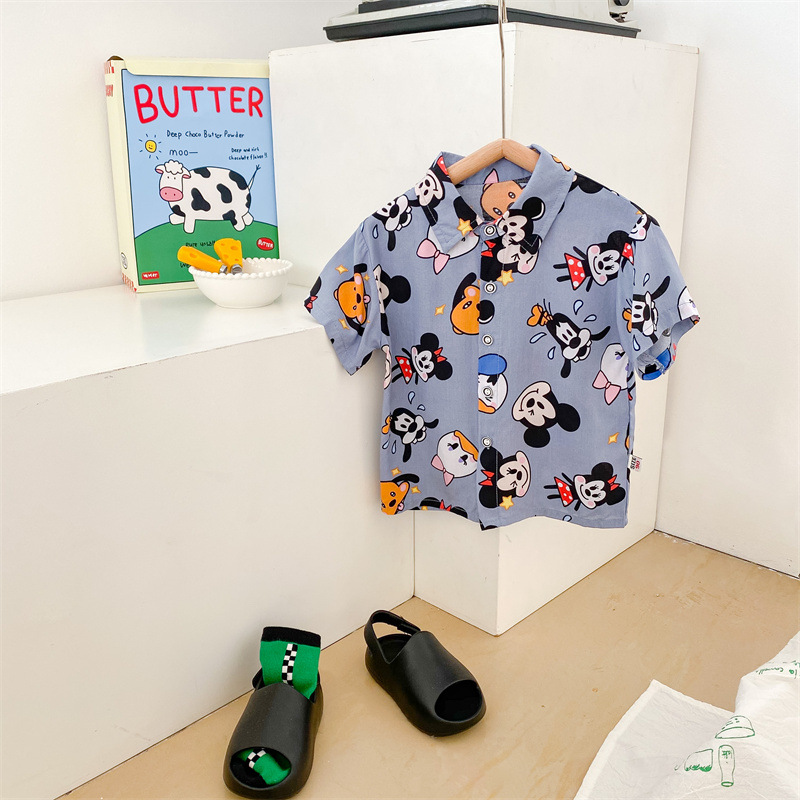 여름 신상 남녀 아기용 통기성 면 루즈핏 프린트 10가지 색상 반팔 셔츠 만화 프린트스토어 가기