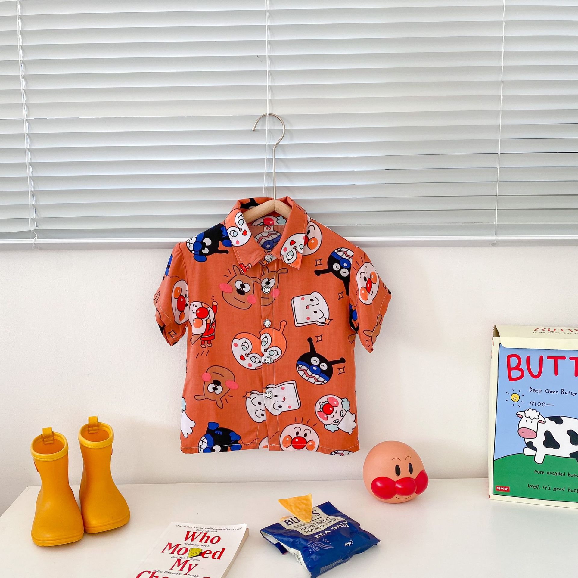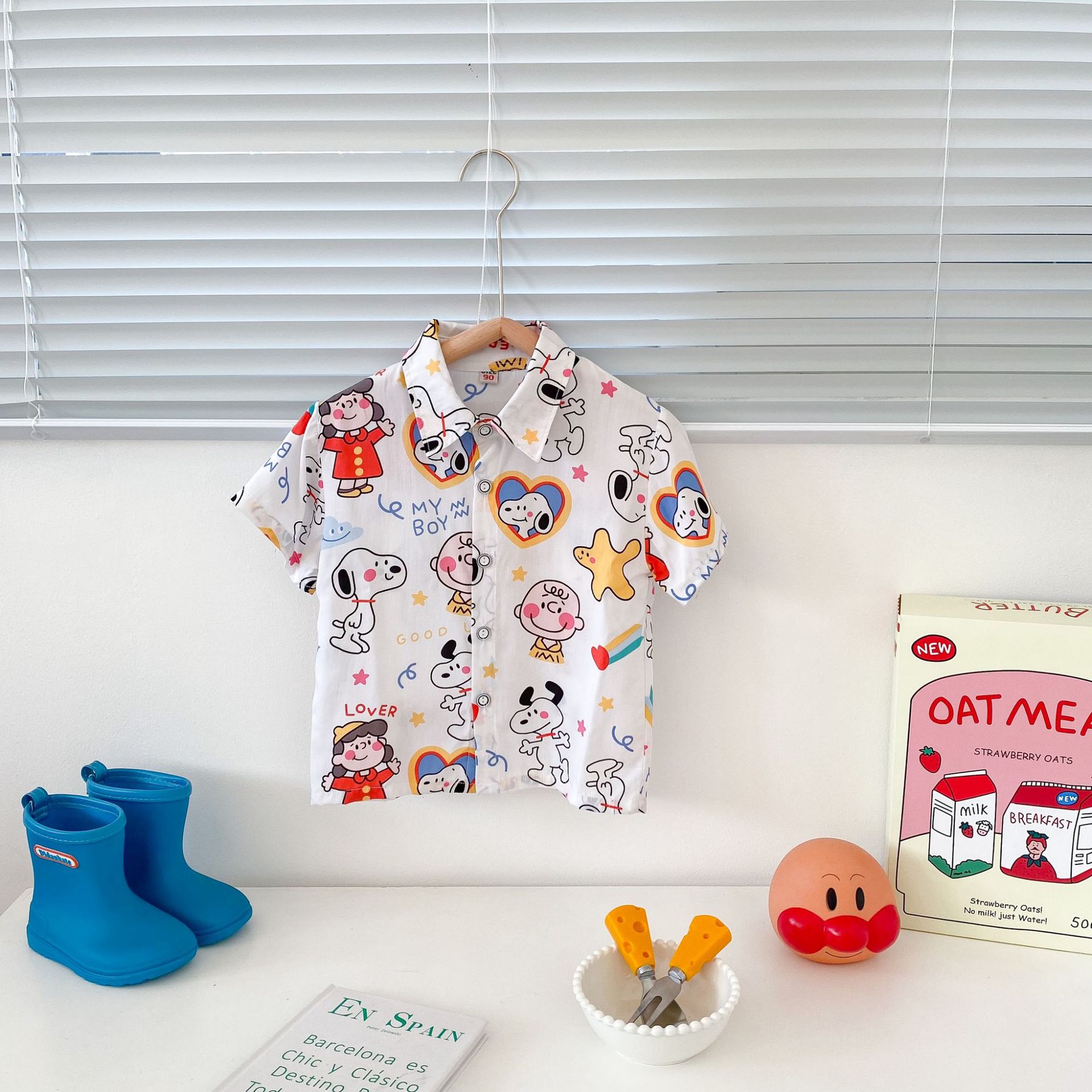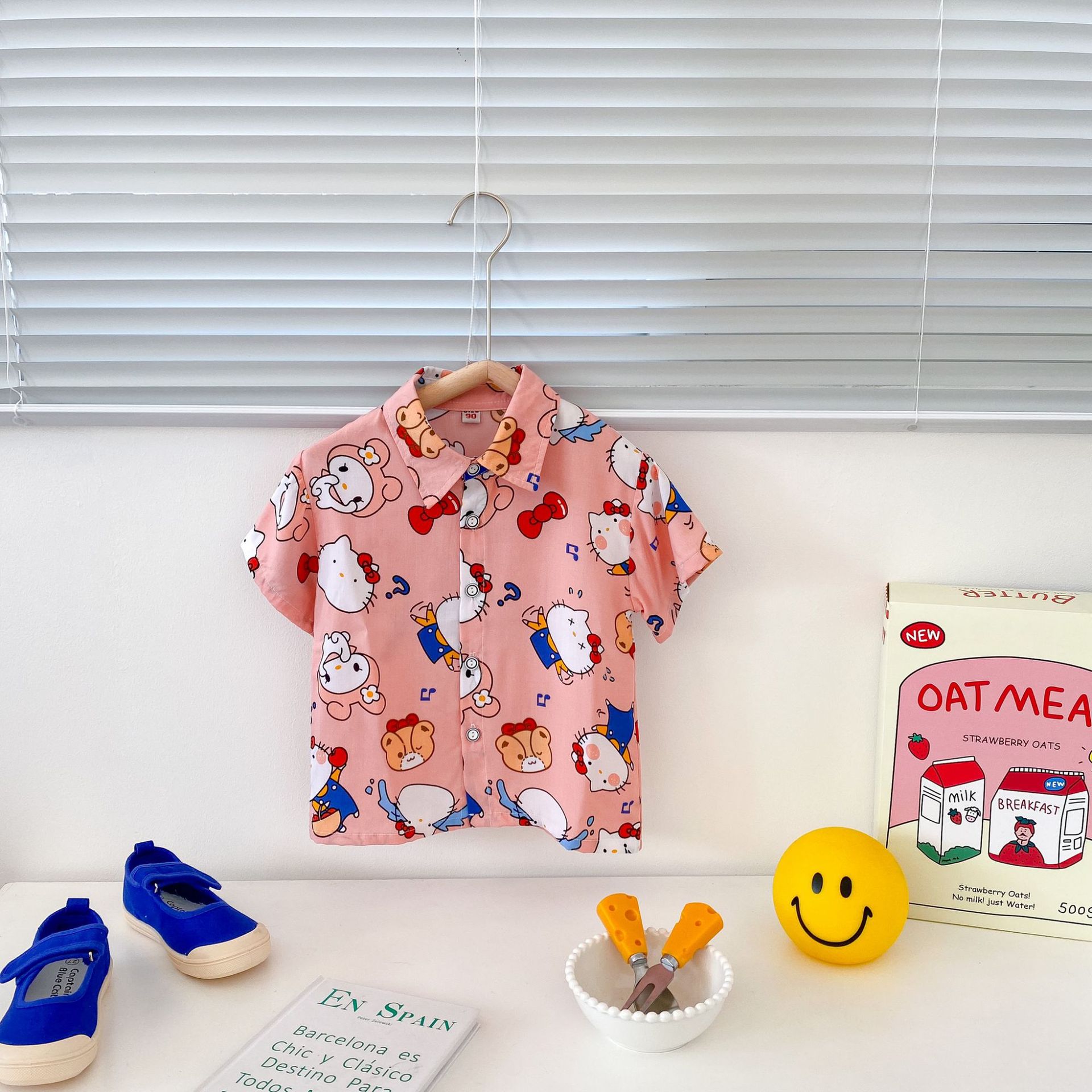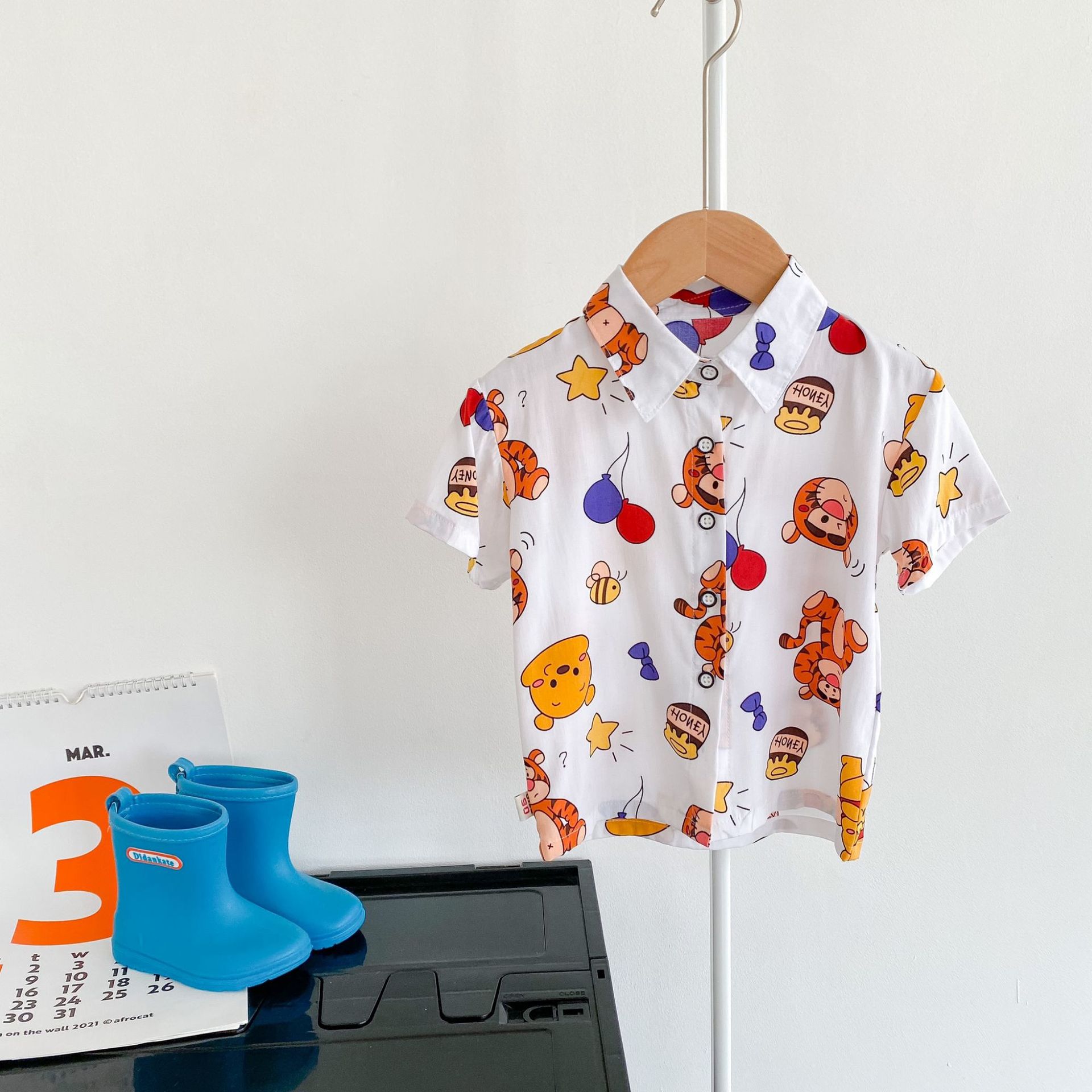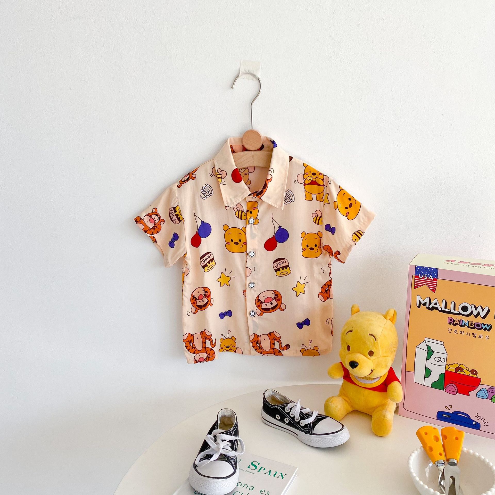 여름 신상 남녀 아기용 통기성 면 루즈핏 프린트 10가지 색상 반팔 셔츠 만화 프린트스토어 가기