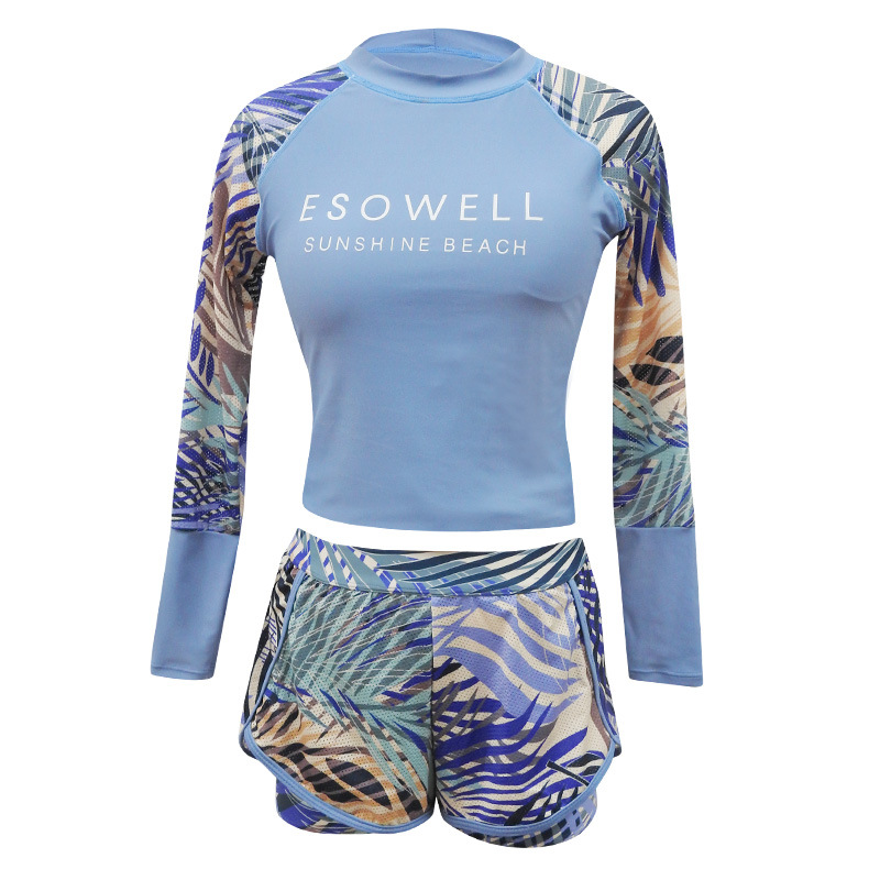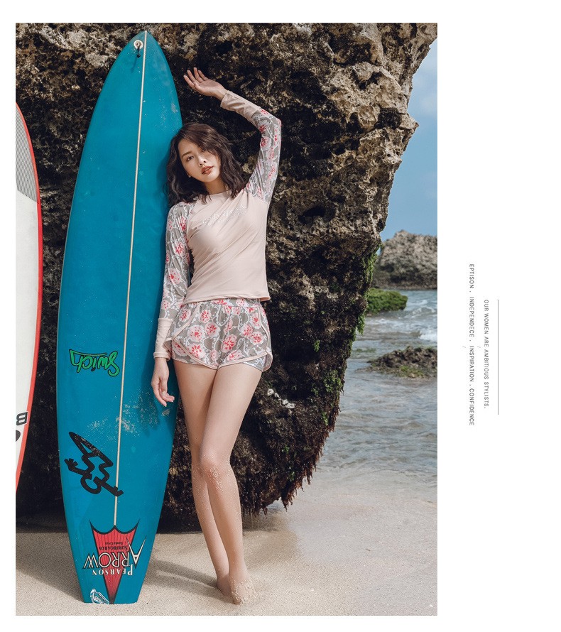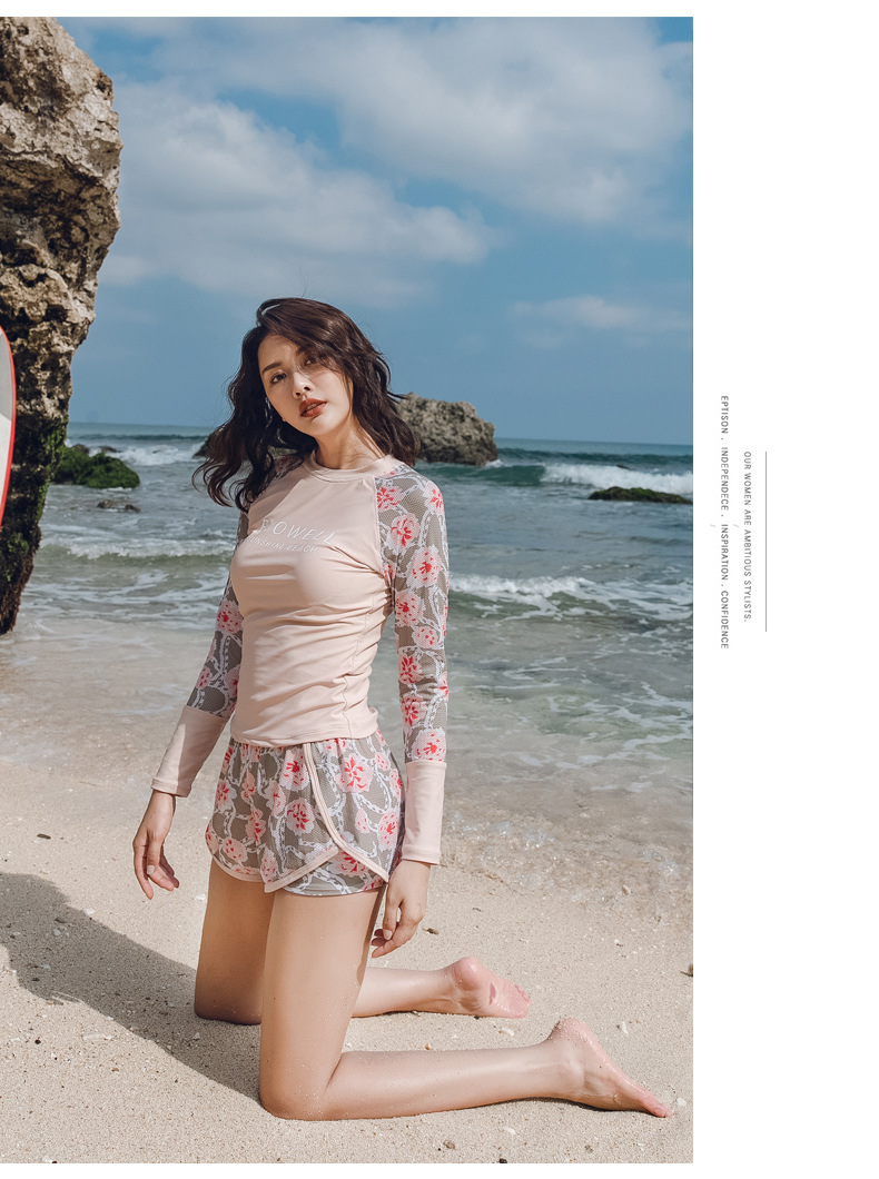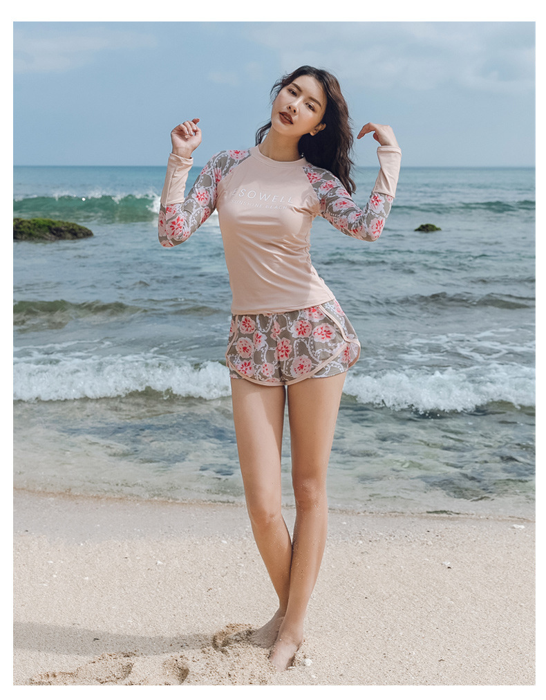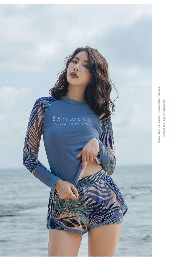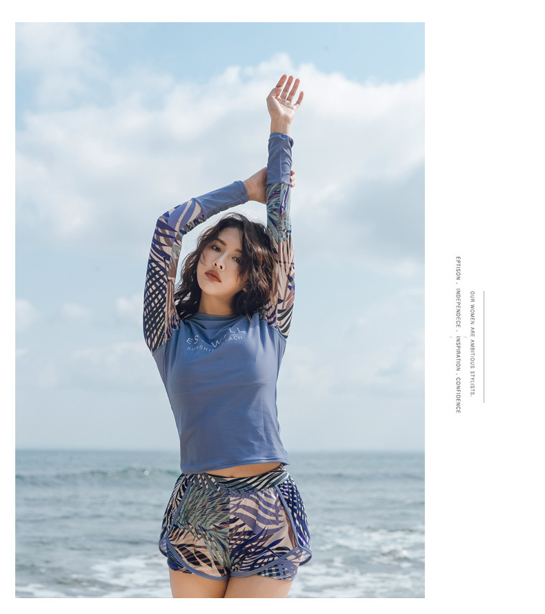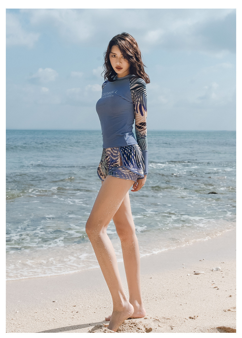 2021 새로운 배꼽 커버 분할 보수 수영복 여성의 캐주얼 서핑 다이빙 스포츠 긴 소매 온천 목욕 세트