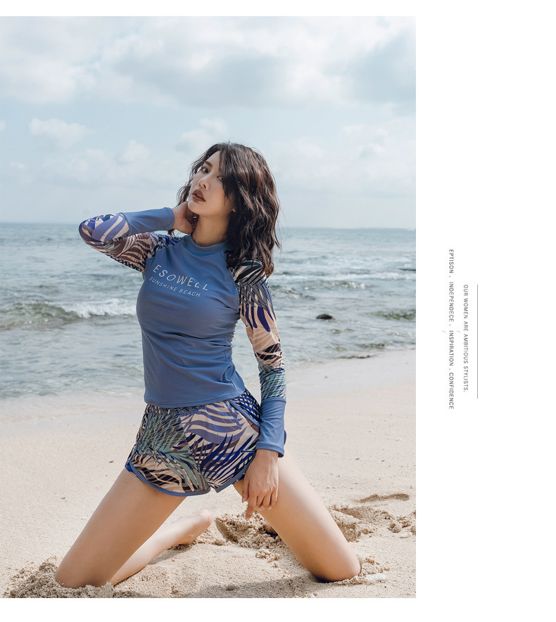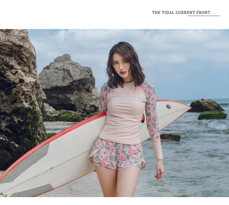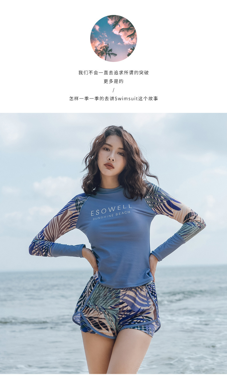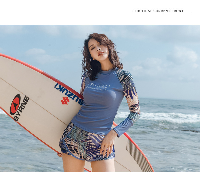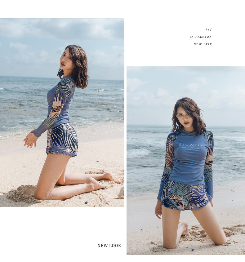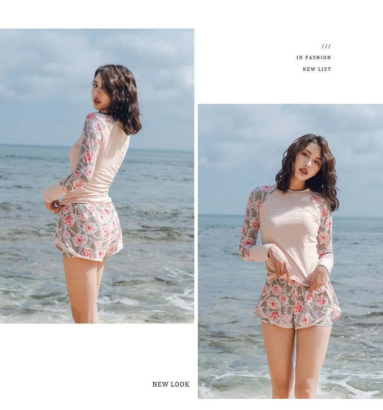 2021 새로운 배꼽 커버 분할 보수 수영복 여성의 캐주얼 서핑 다이빙 스포츠 긴 소매 온천 목욕 세트스토어 가기