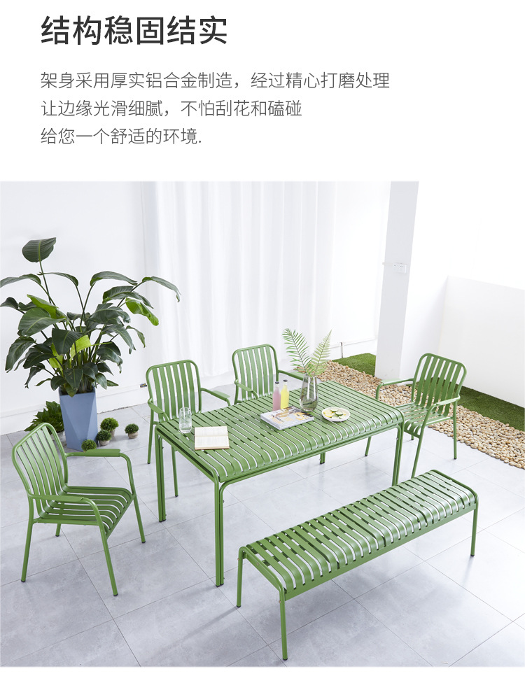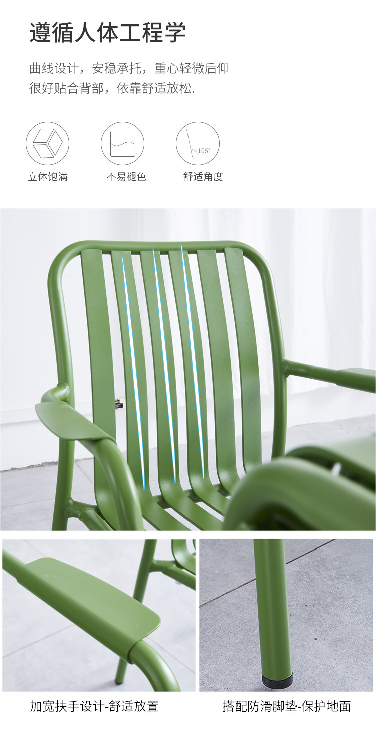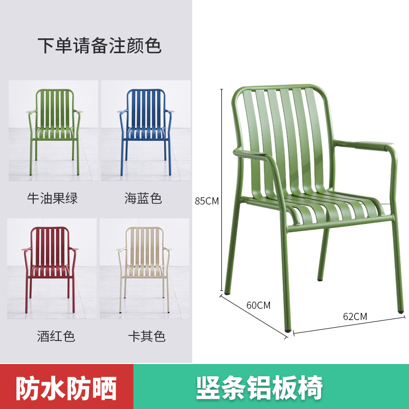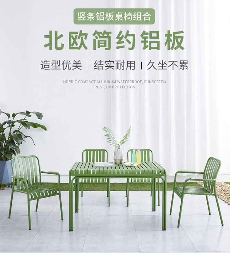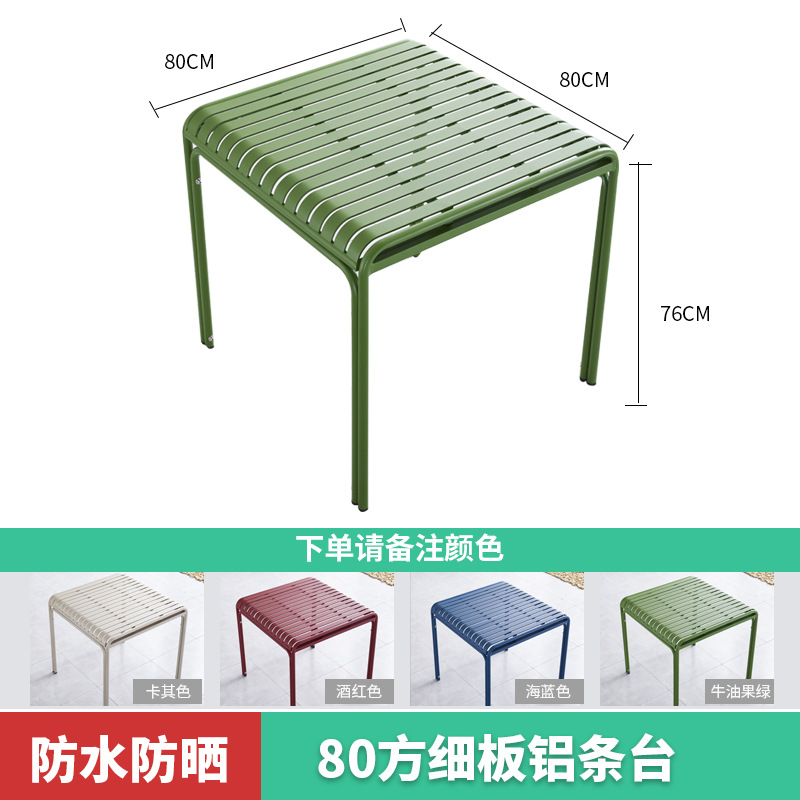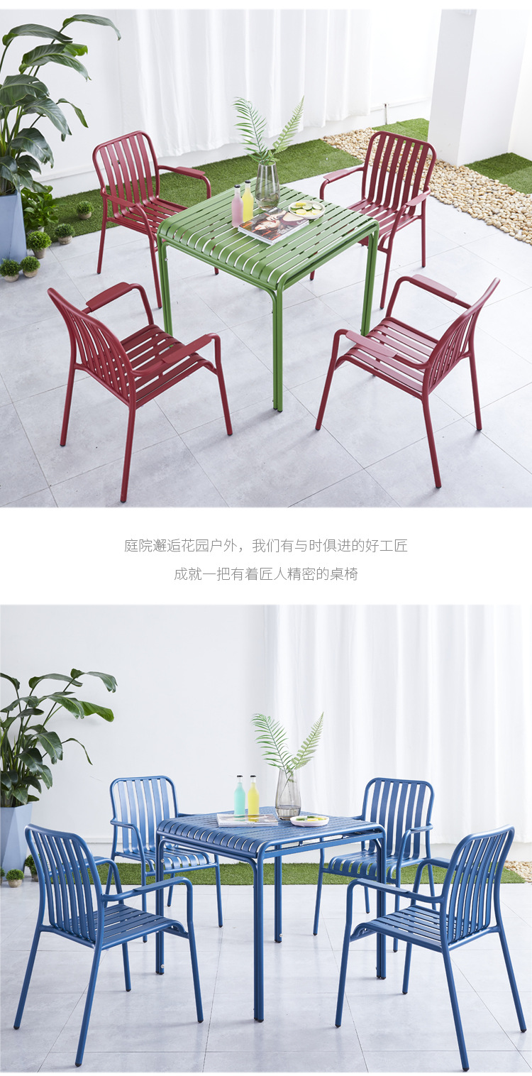 야외 레저 알루미늄 플레이트 테이블과 의자 조합 현대 간단한 야외 야외 안뜰 정원 우유 차 가게 컬러 테이블과 의자