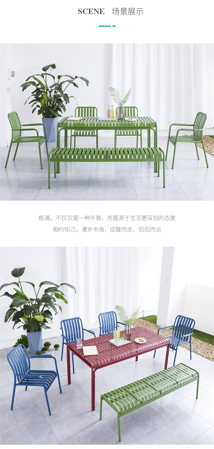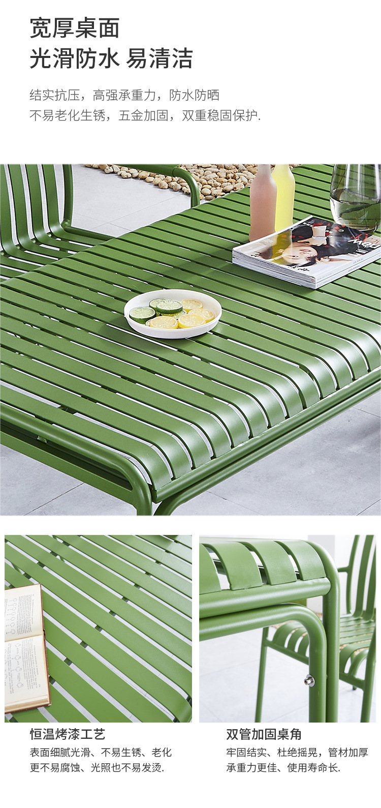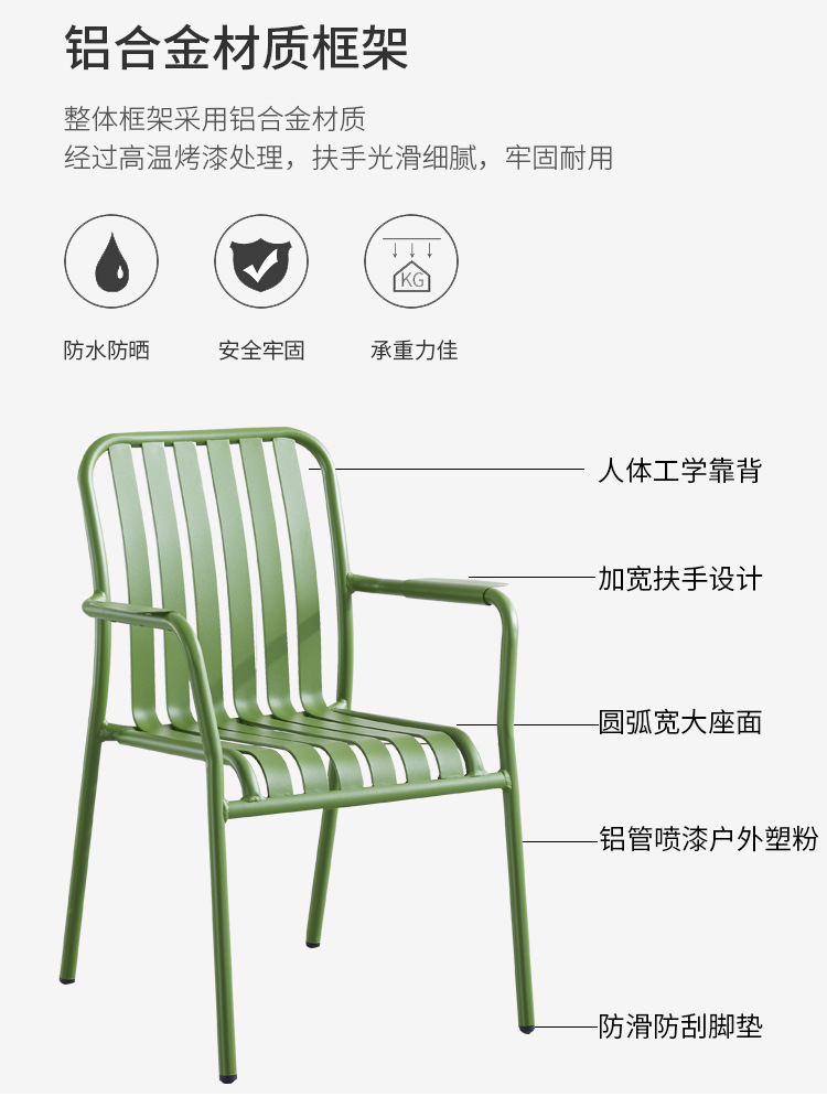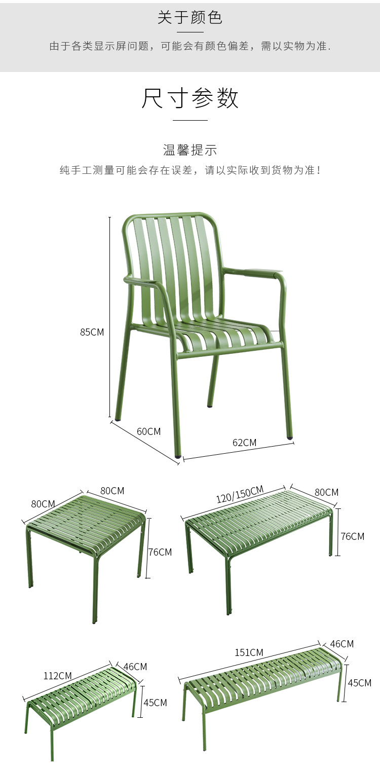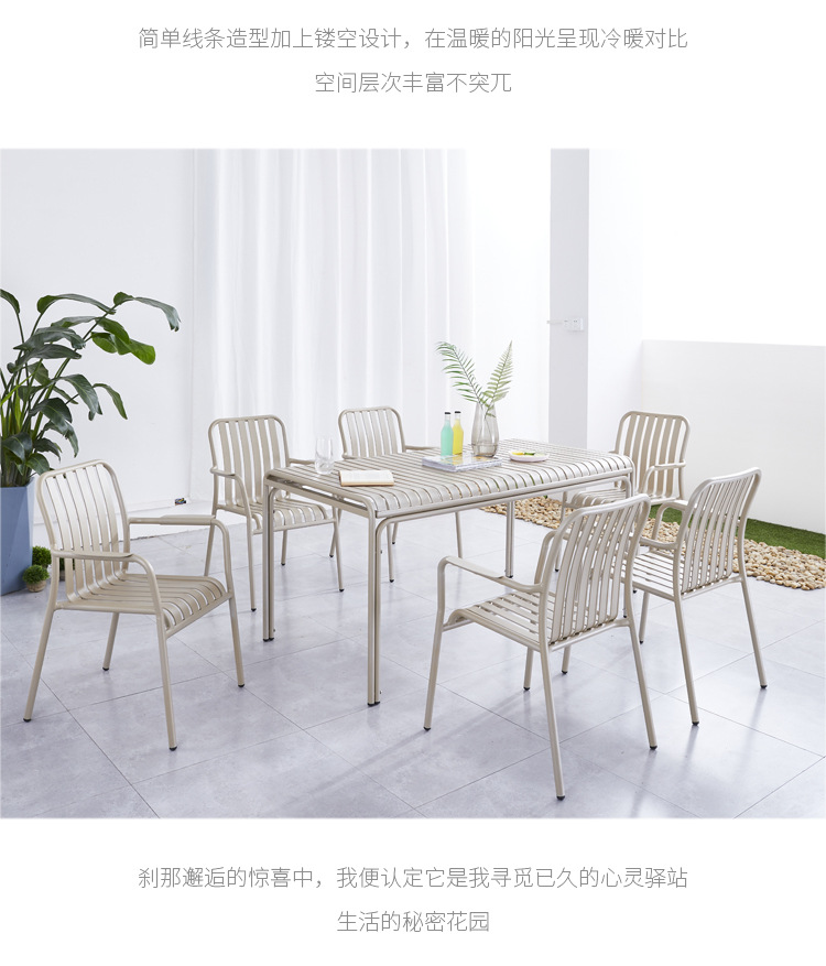 야외 레저 알루미늄 플레이트 테이블과 의자 조합 현대 간단한 야외 야외 안뜰 정원 우유 차 가게 컬러 테이블과 의자