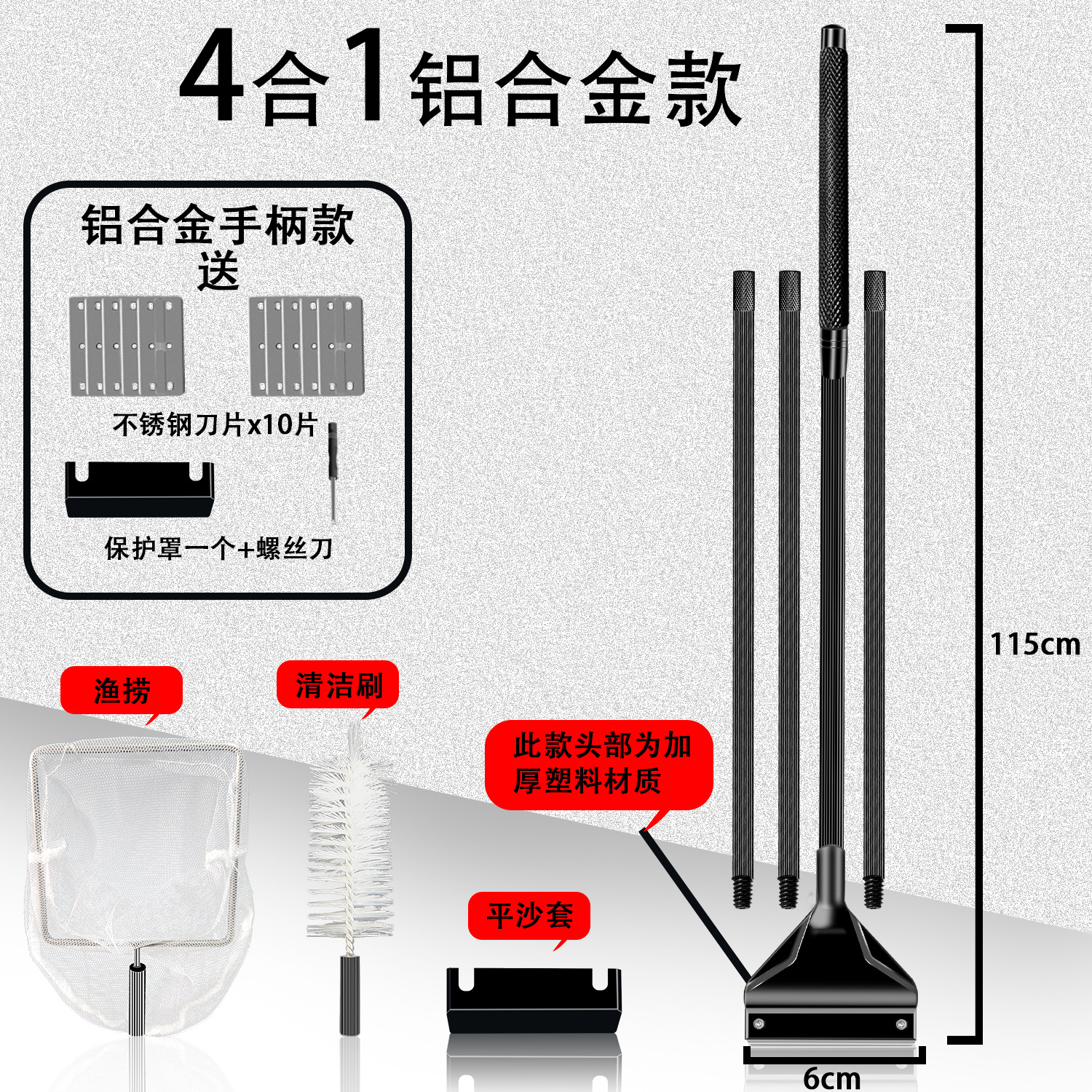 • 쓰리인원 115cm 알루미늄 합금(블랙) 칼날 10개 + 브러시 헤드 + 그물