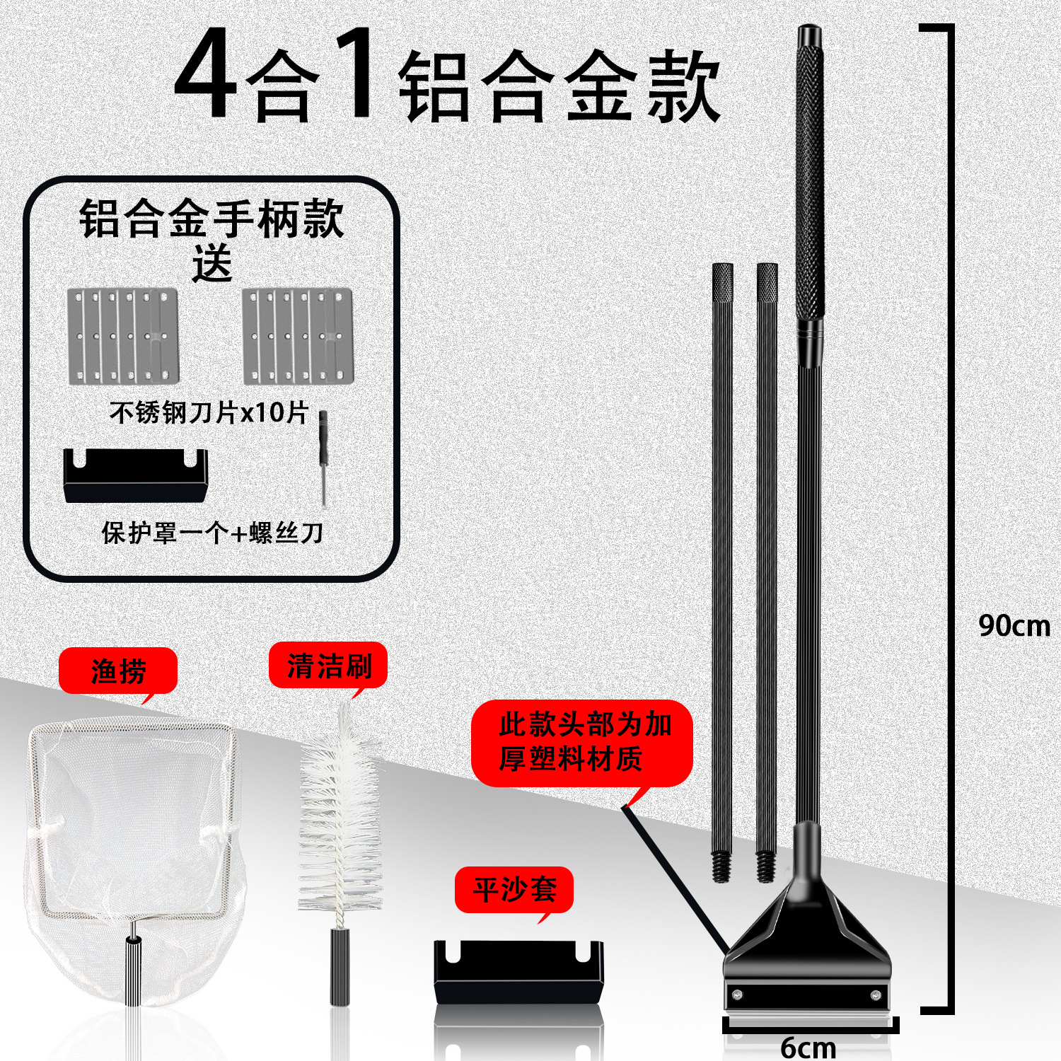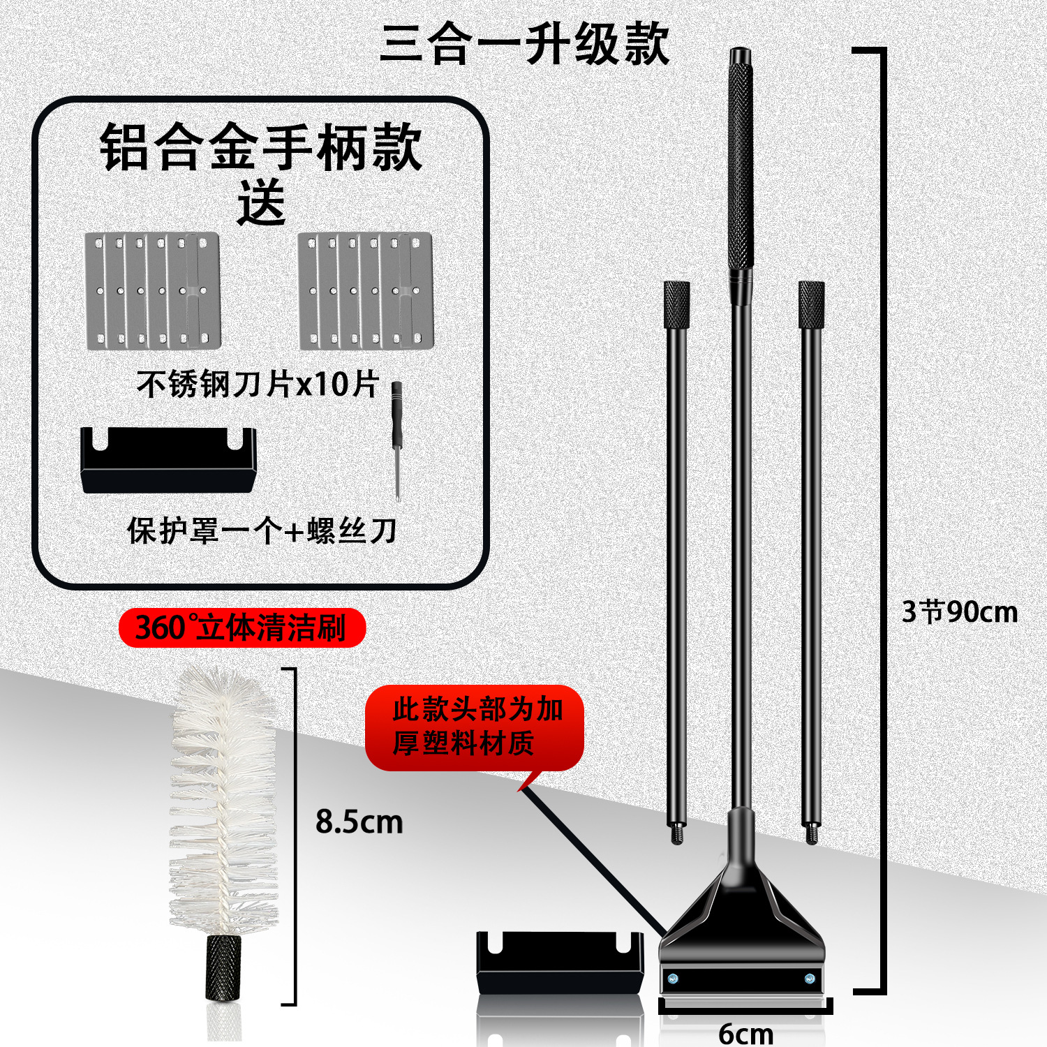 • 쓰리인원 90cm 알루미늄 합금(블랙) 칼날 10개 + 브러시 헤드 + 그물