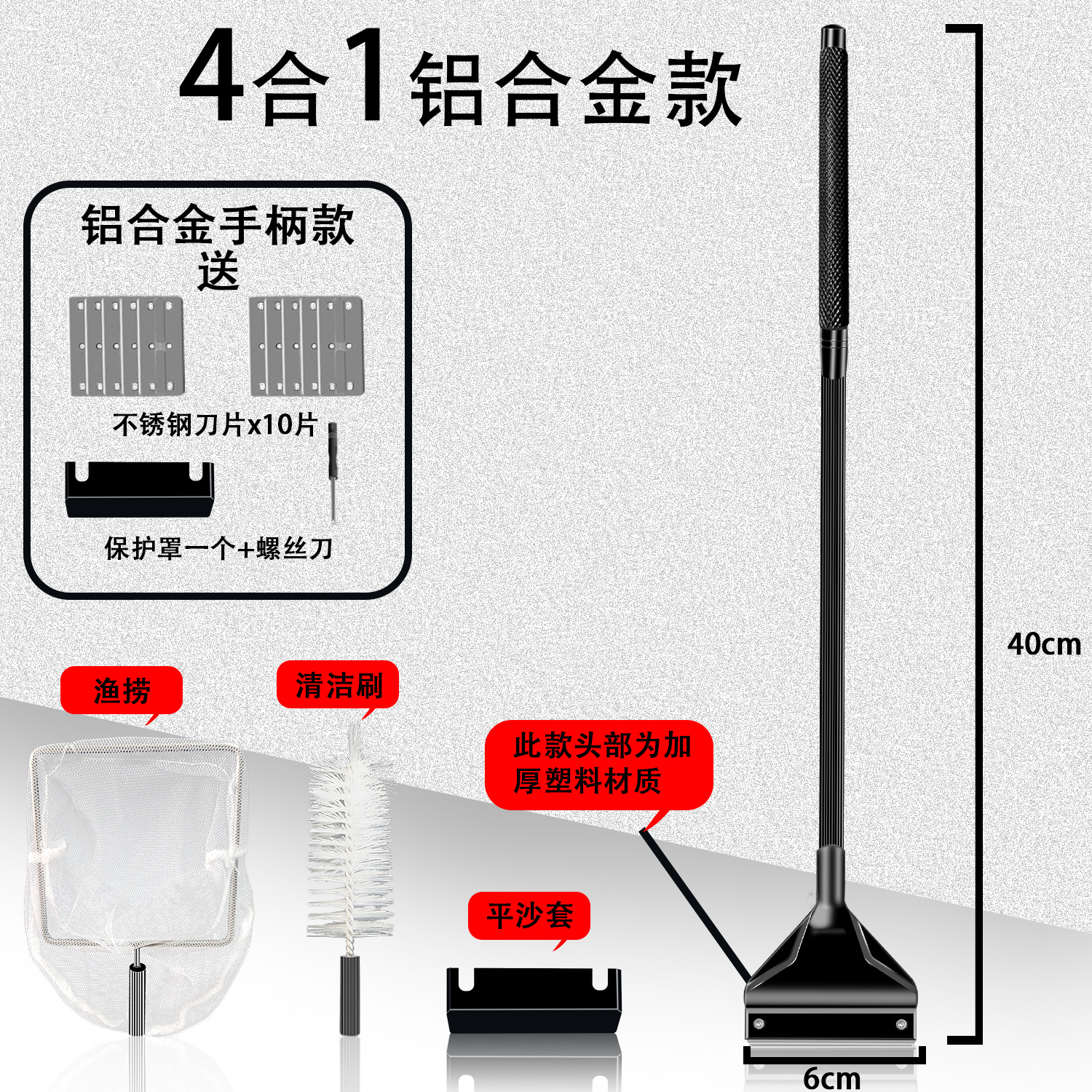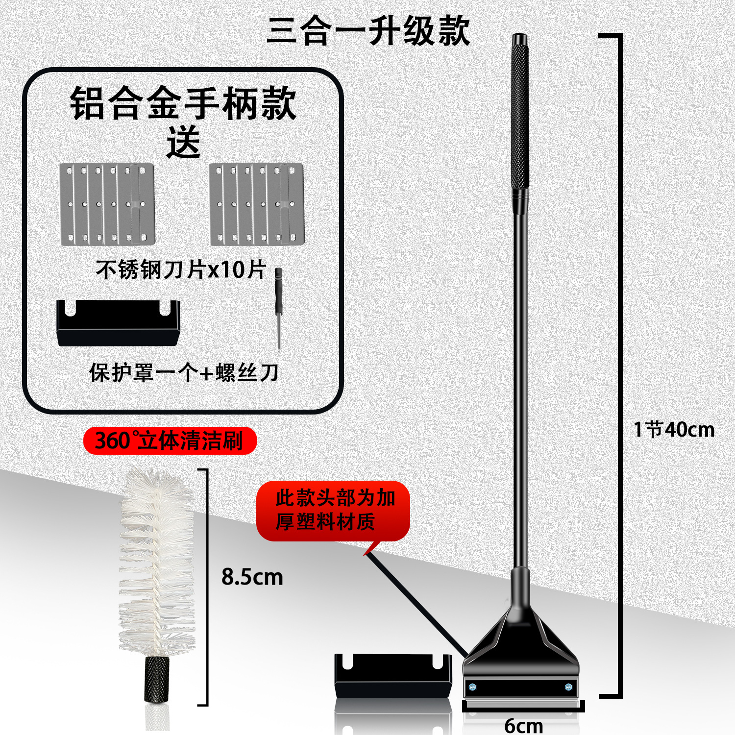 • 쓰리인원 40cm 알루미늄 합금(블랙) 칼날 10개 + 브러시 헤드 + 그물