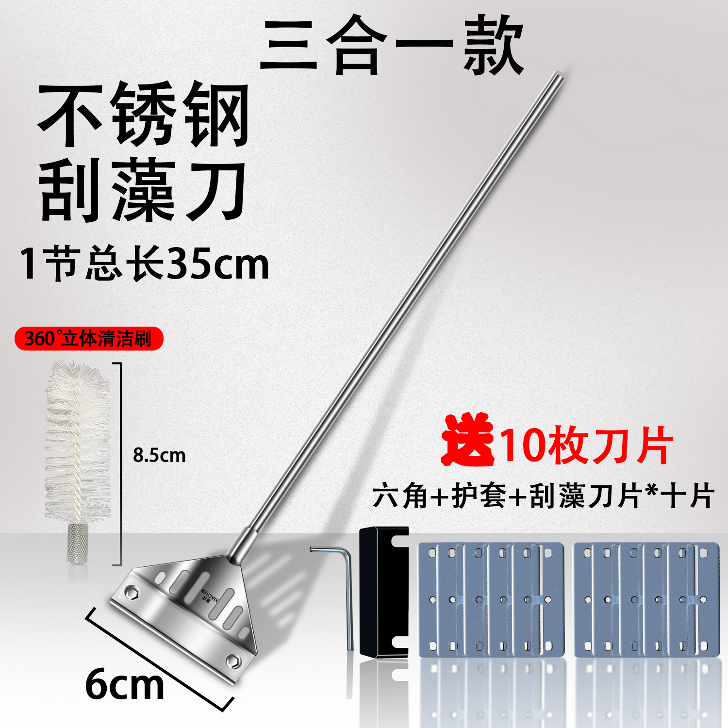 • 2-in-1 35cm 스테인리스 스틸 [블레이드 10개 + 브러시 헤드]