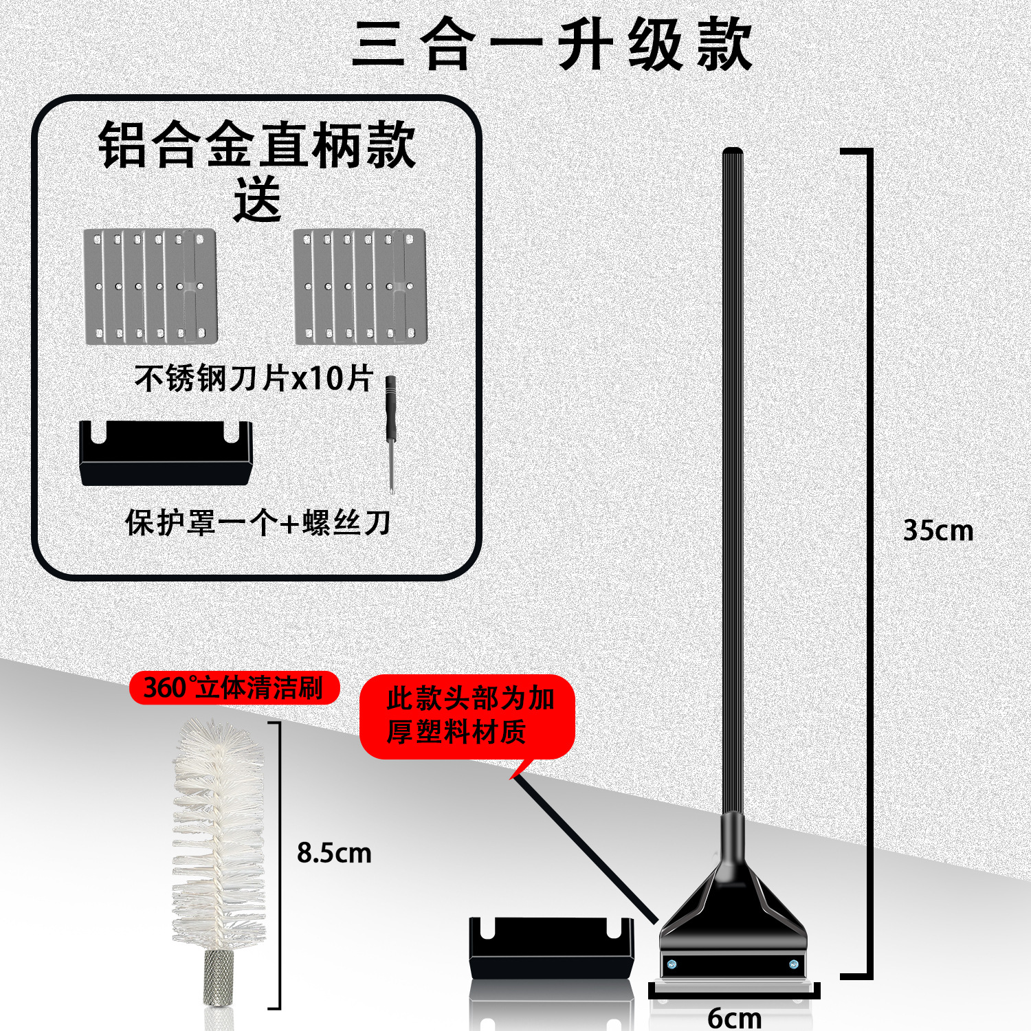 • 2-in-1 35cm 알루미늄 합금(검정색) 칼날 5개 + 칫솔모