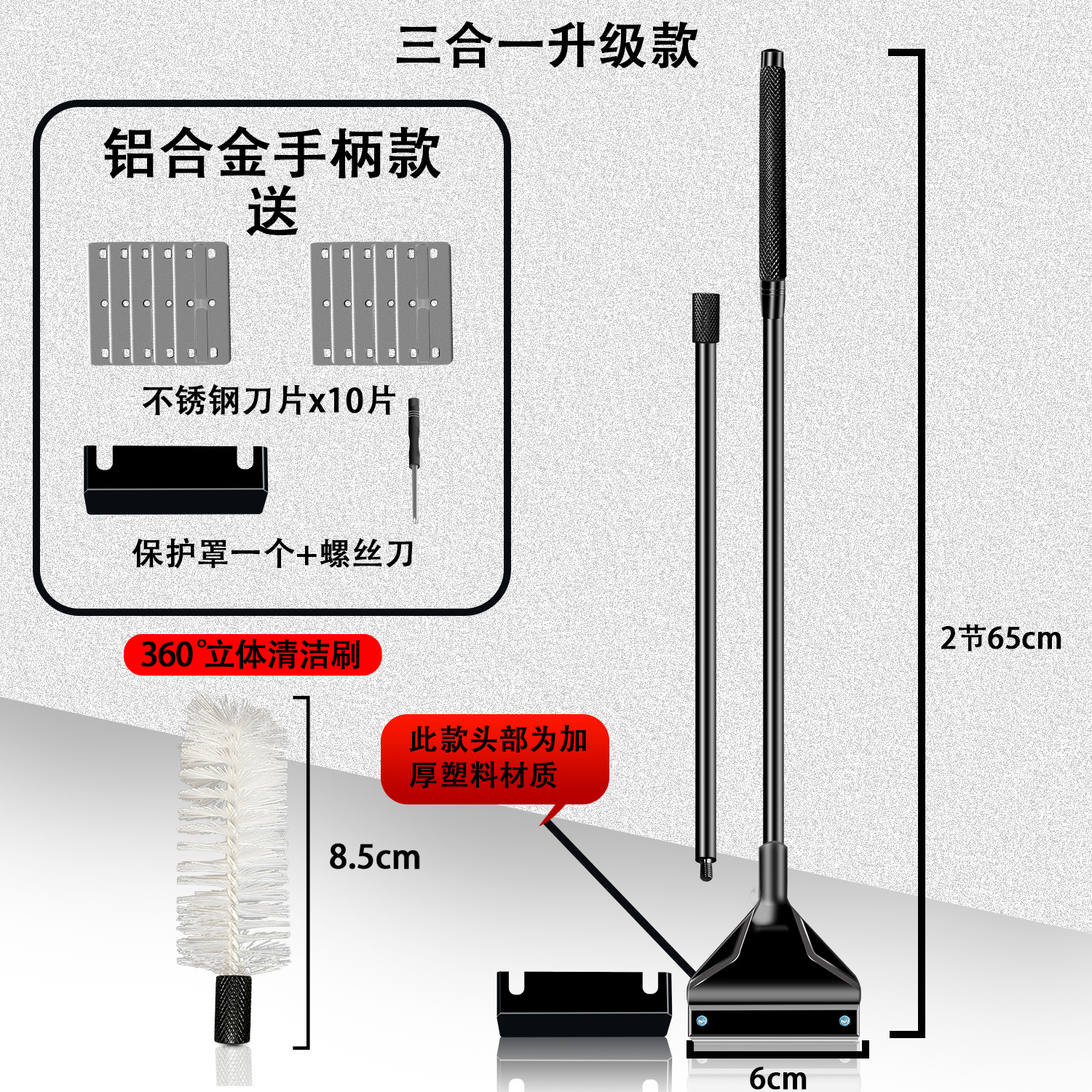 • 쓰리인원 65cm 알루미늄 합금(블랙) 칼날 10개 + 브러시 헤드 + 그물