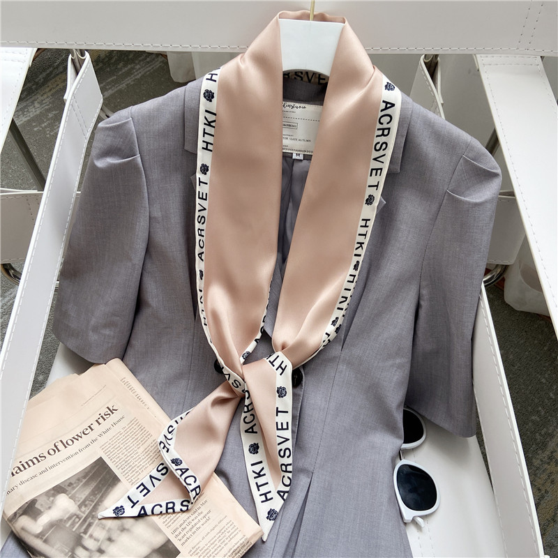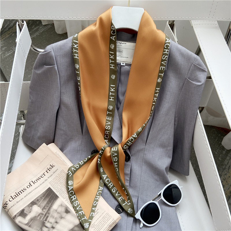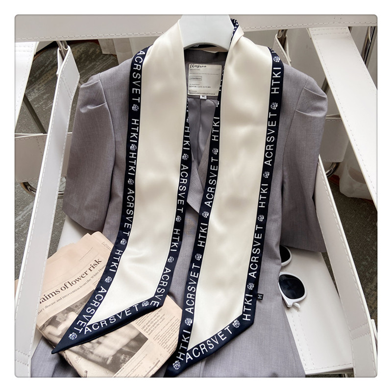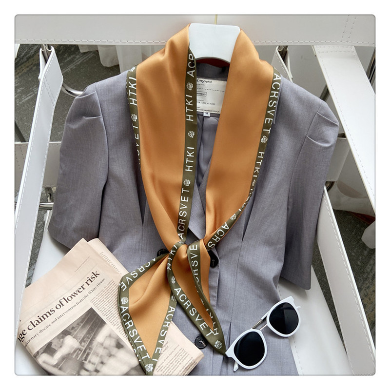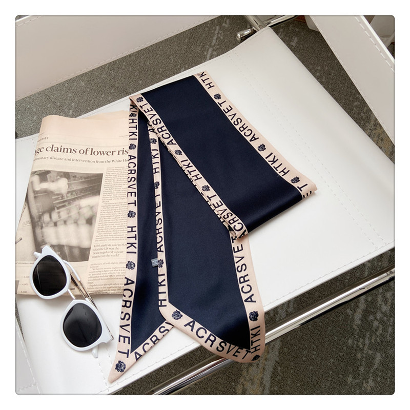 빈티지 레터 사이드 실크 스카프 세련된 단색 모든 일치 스카프 헤어 벨트 넥타이 가방 장식 전문 여성의 긴 작은 실크 스카프