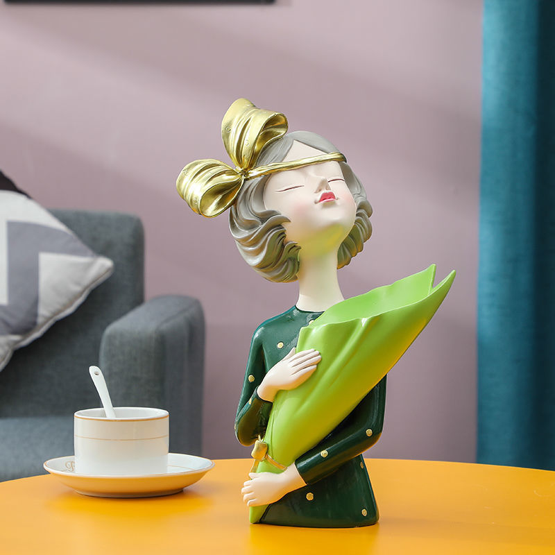 북유럽 소녀 꽃다발 생일 선물 여자 현관 열쇠 보관 트레이 실내 장식품 심플한 장식