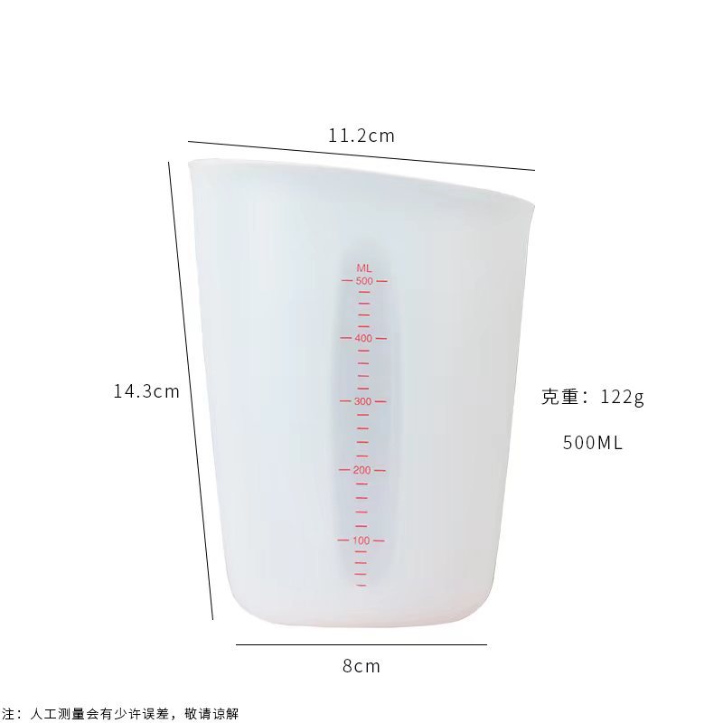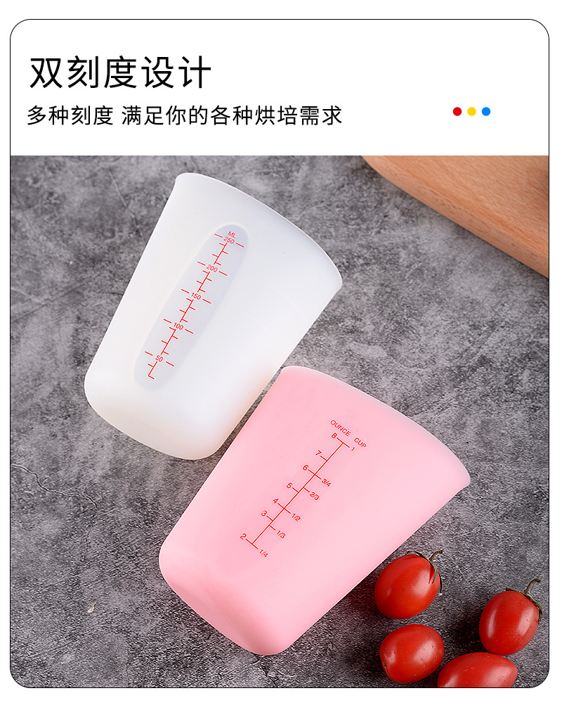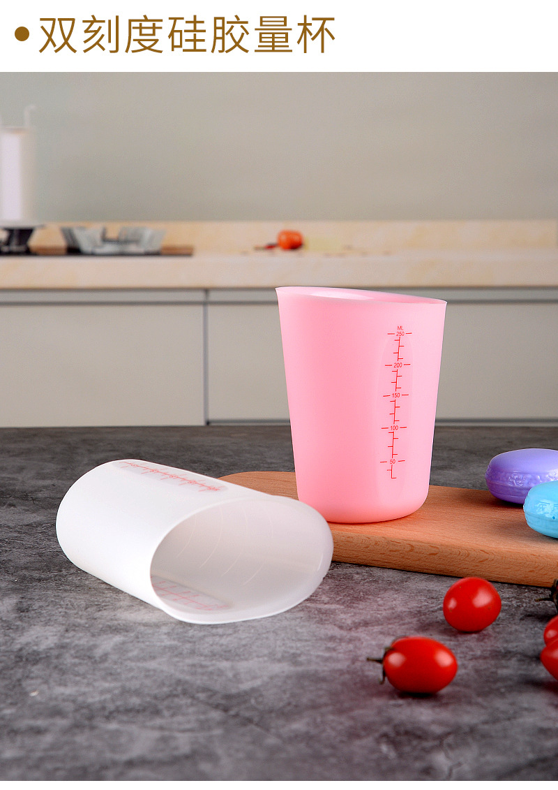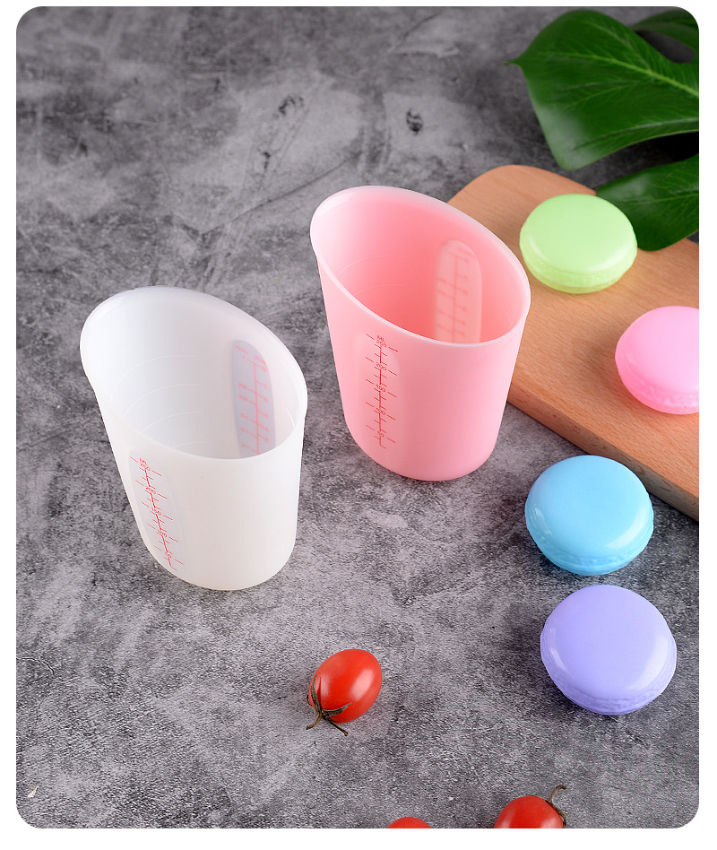 고온 방지 실리콘 계량컵 125ml 250ml 500ml 실리콘 컵 시각적 이중 눈금 베이킹 계량컵