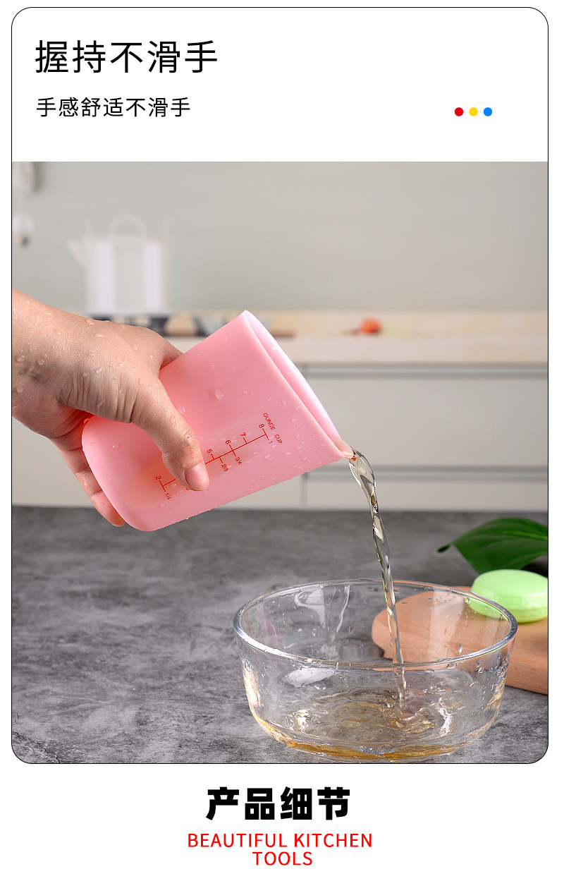 고온 방지 실리콘 계량컵 125ml 250ml 500ml 실리콘 컵 시각적 이중 눈금 베이킹 계량컵스토어 가기