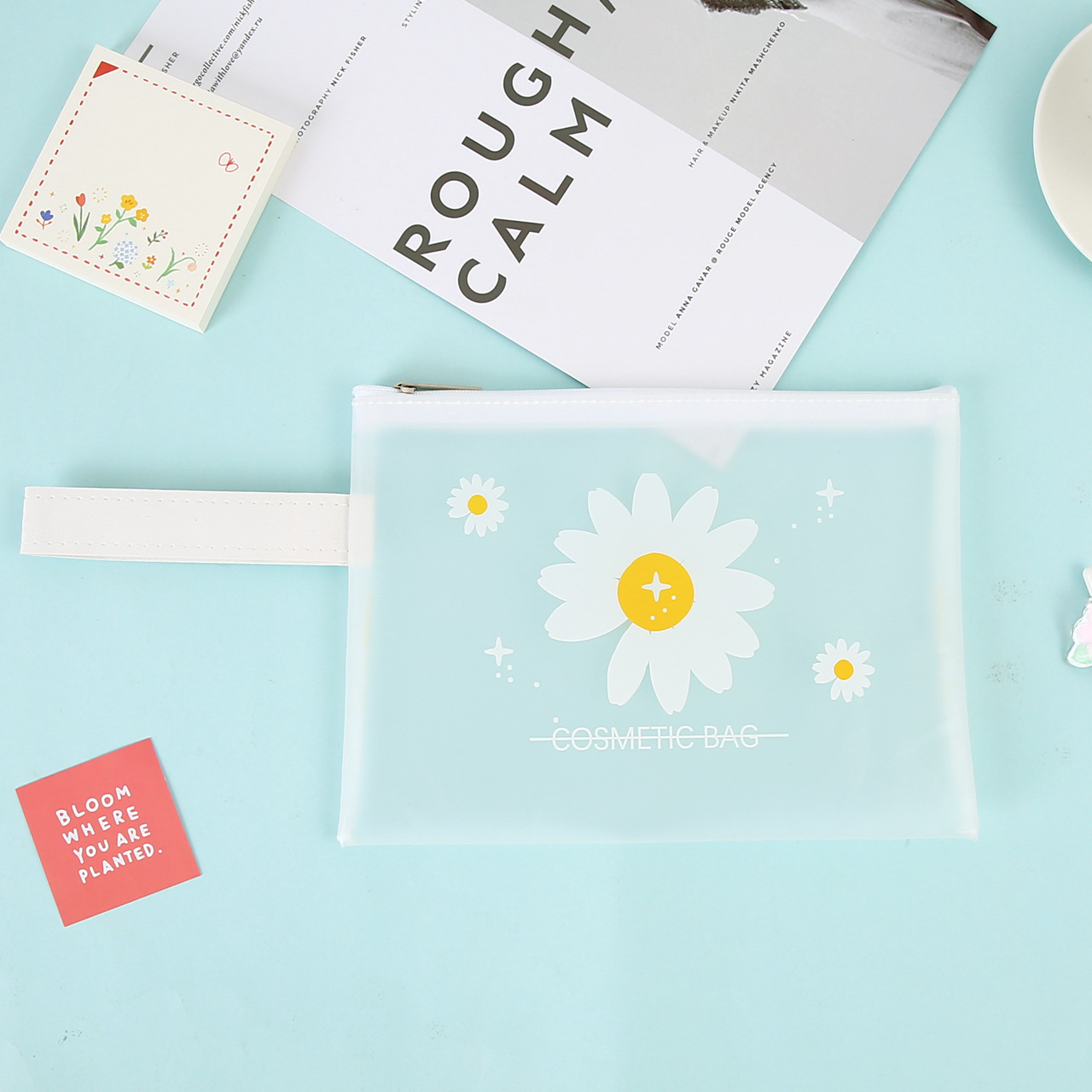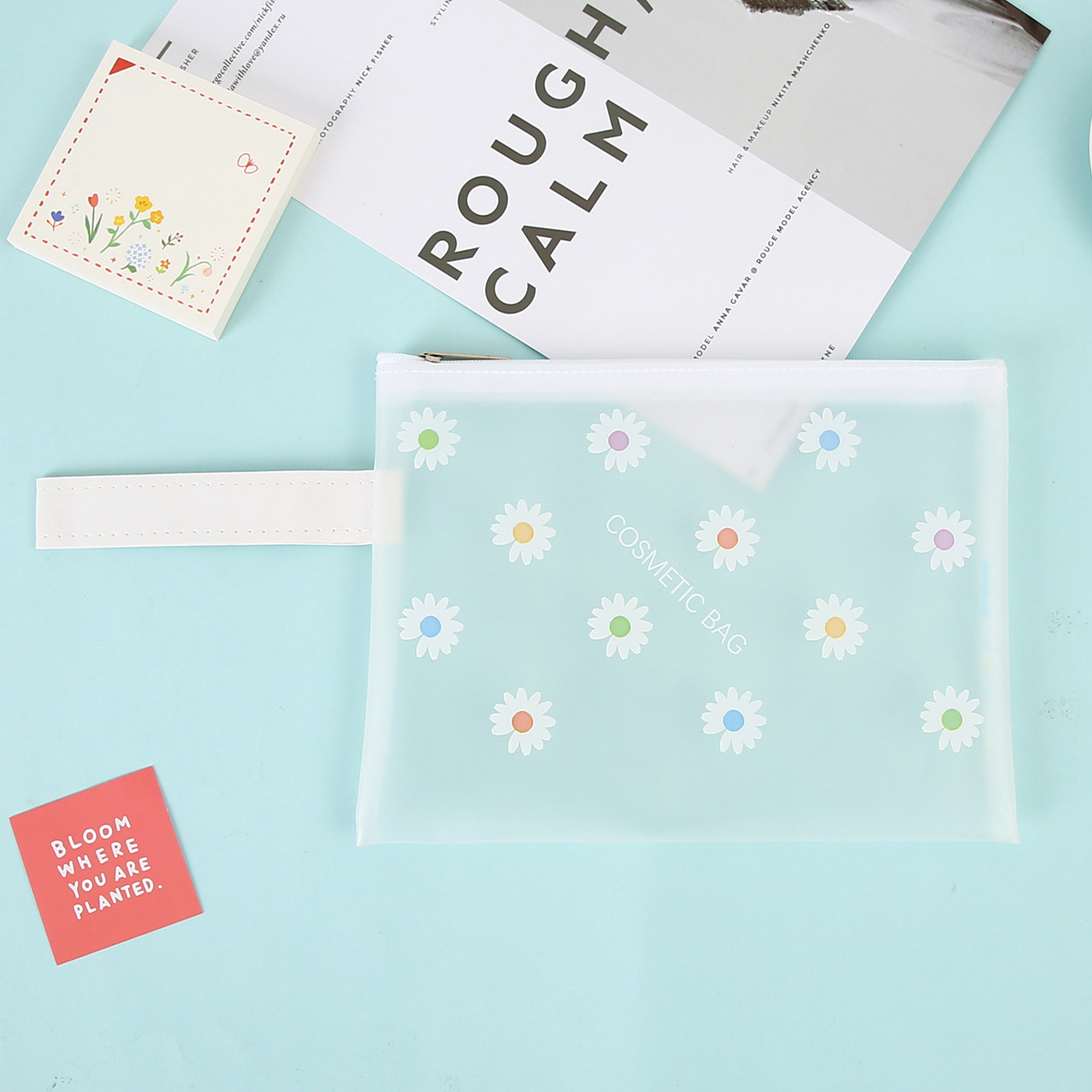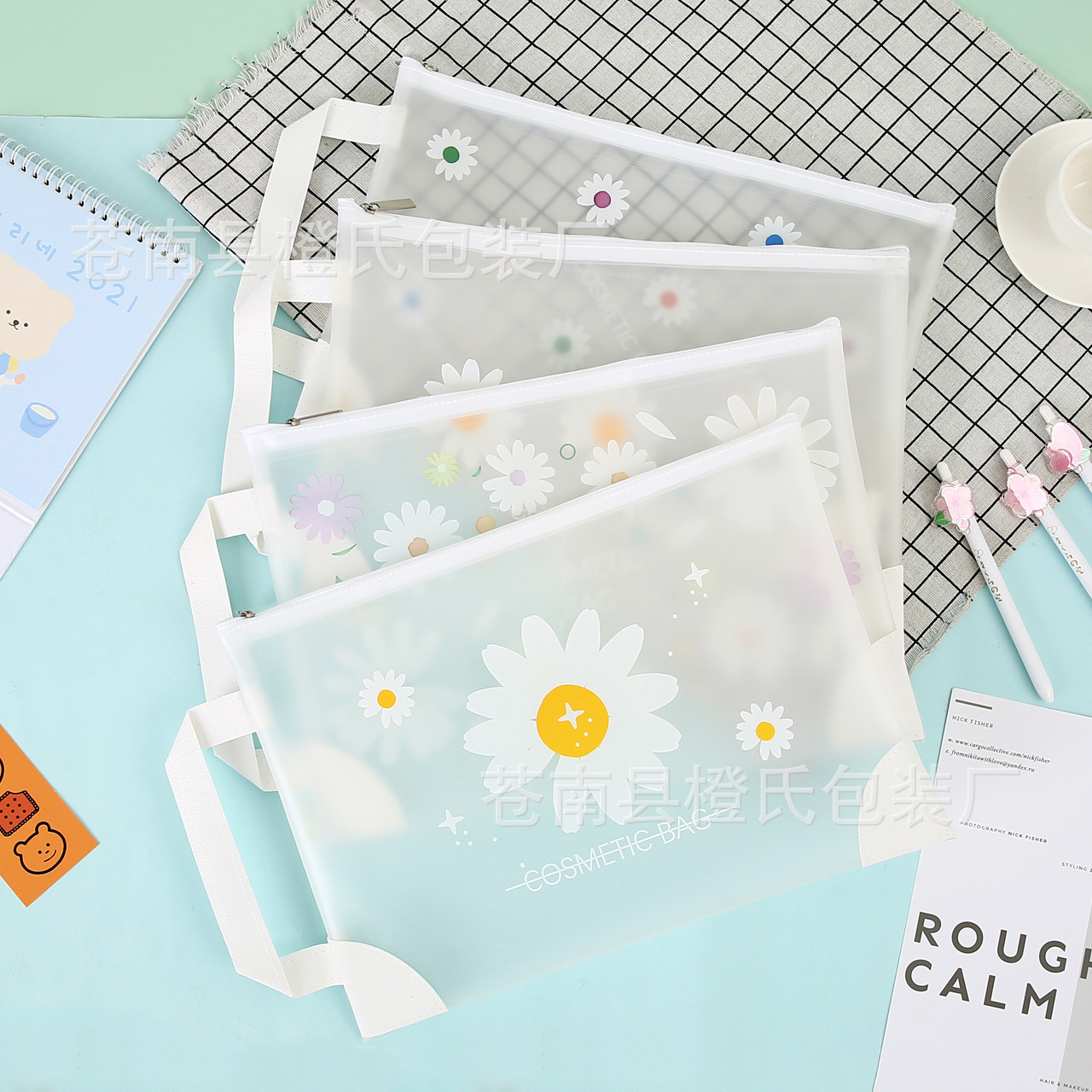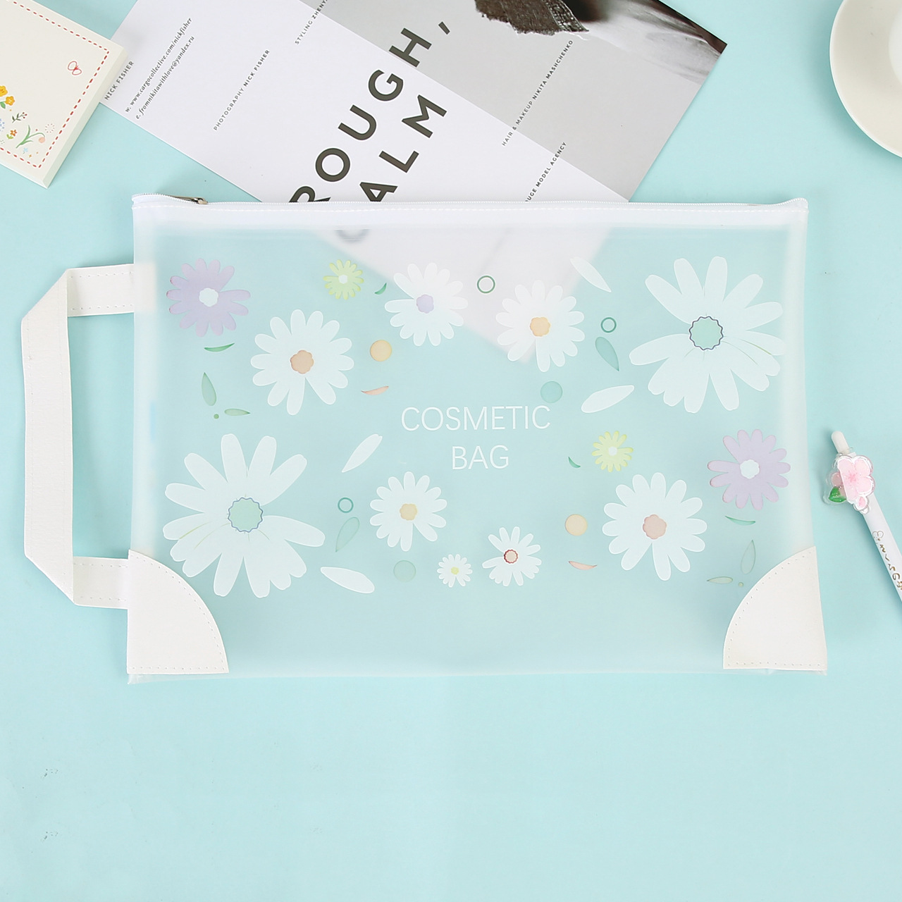 재고 도매 젖빛 투명 문서 가방 지퍼 파일 정보 가방 작은 신선한 데이지 플라스틱 테스트 용지 보관 가방스토어 가기