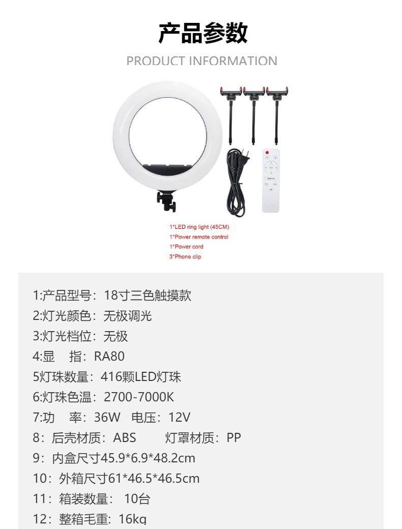 크로스 보더 18 인치 LED 링 필 라이트 led 라이브 필 라이트 사진 필 라이트 더블 컬러 온도 원격 제어 소프트 라이트스토어 가기