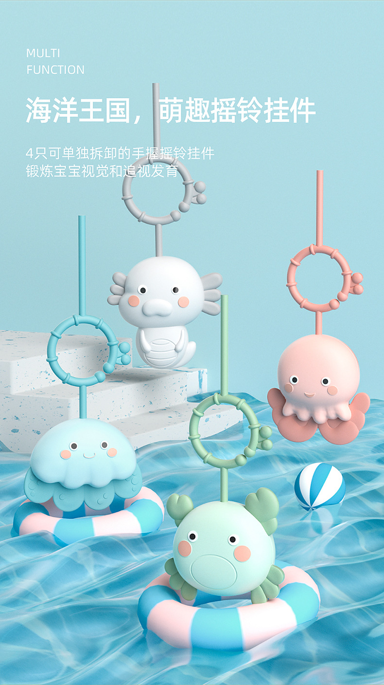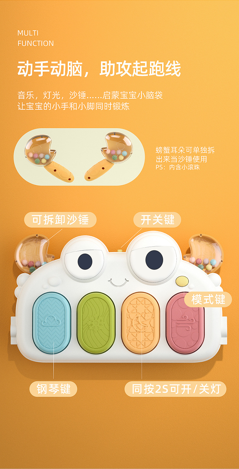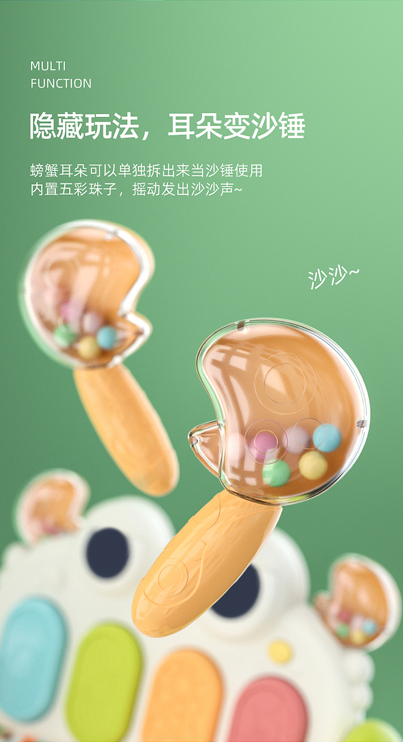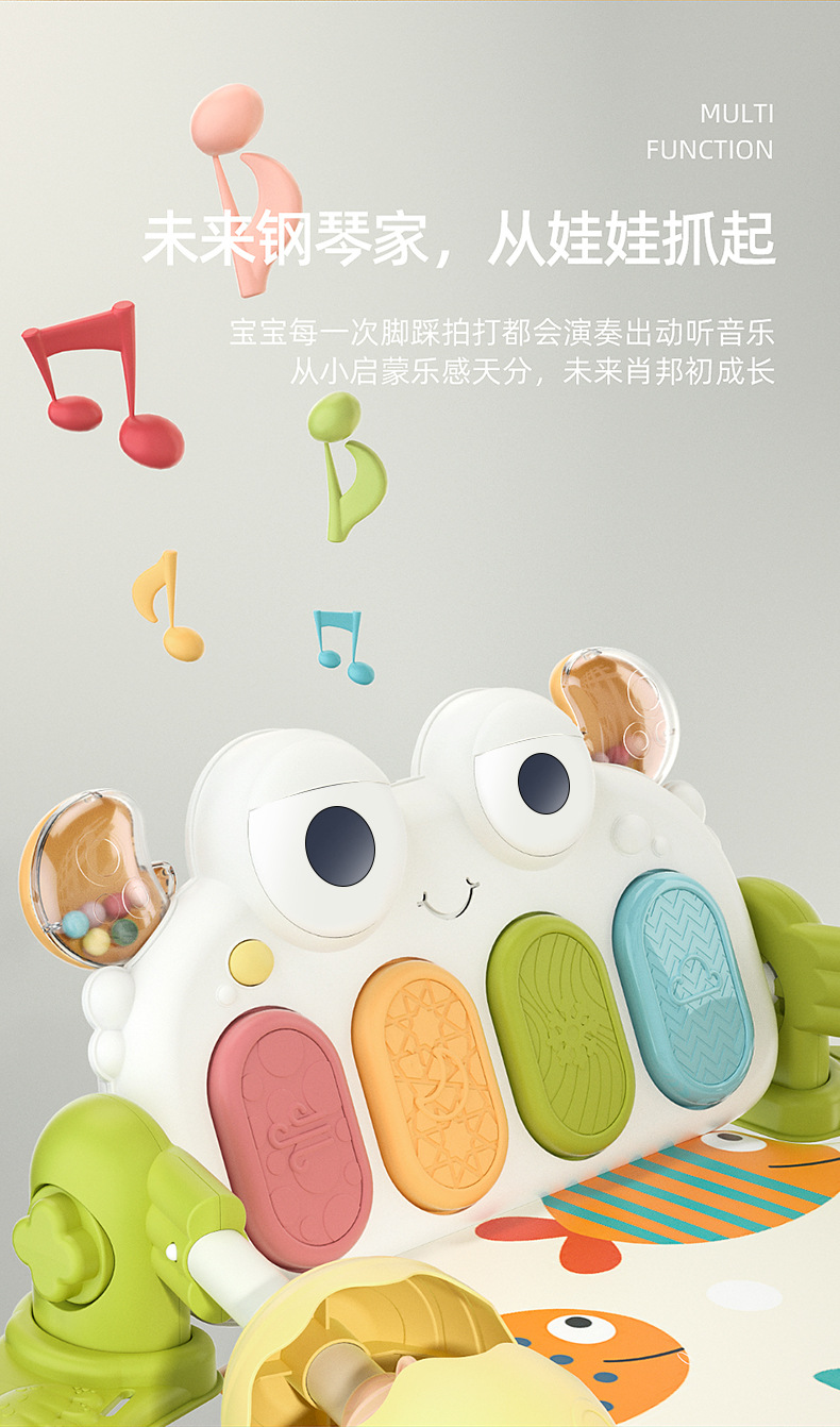 【电商盒装】脚踏琴主图/选项图/详情图中挂件使用的是硬胶挂环挂起,使挂件面向买家,方便买家挑选,实际使用过程中,挂件需面向婴儿,因此采用绳子挂起挂件,请知悉!