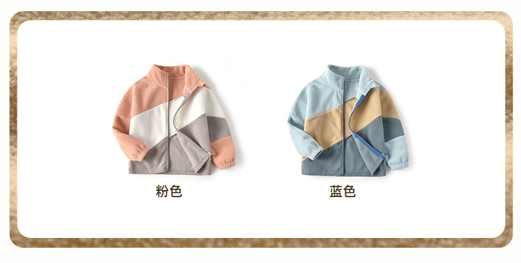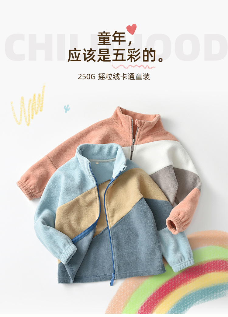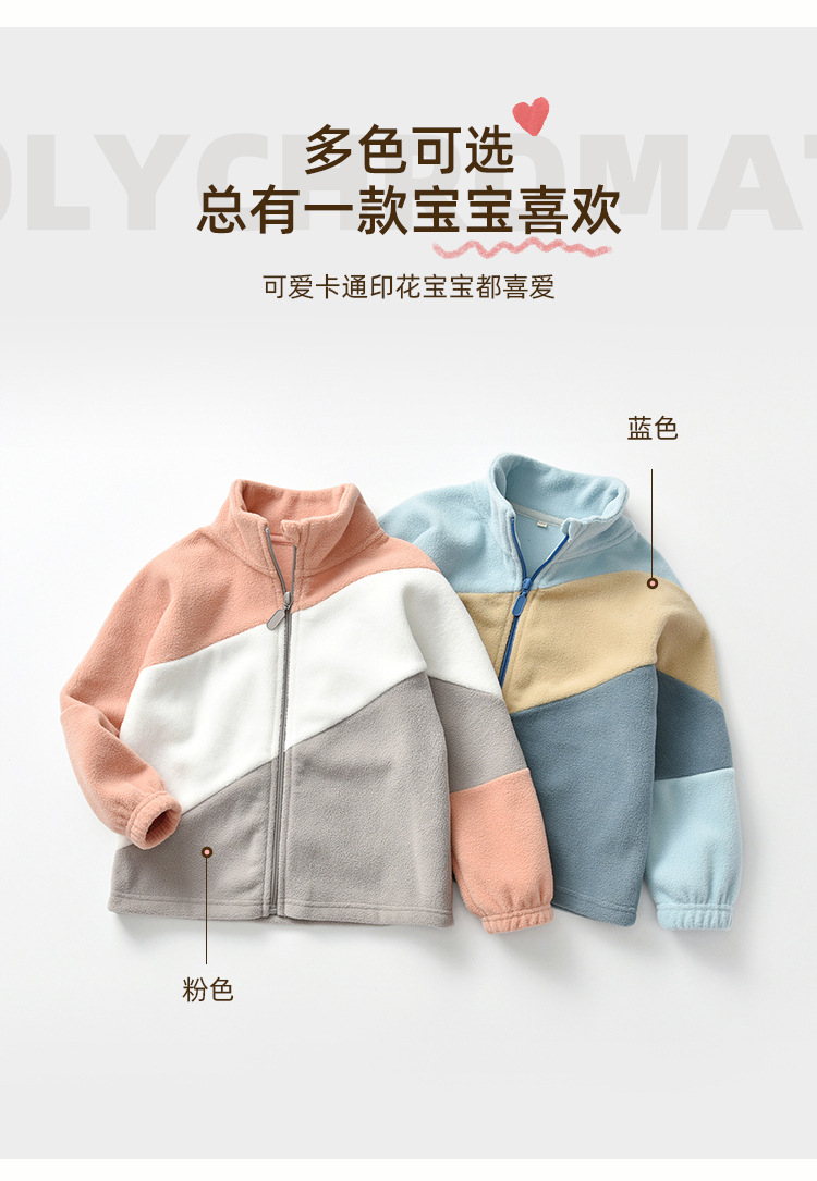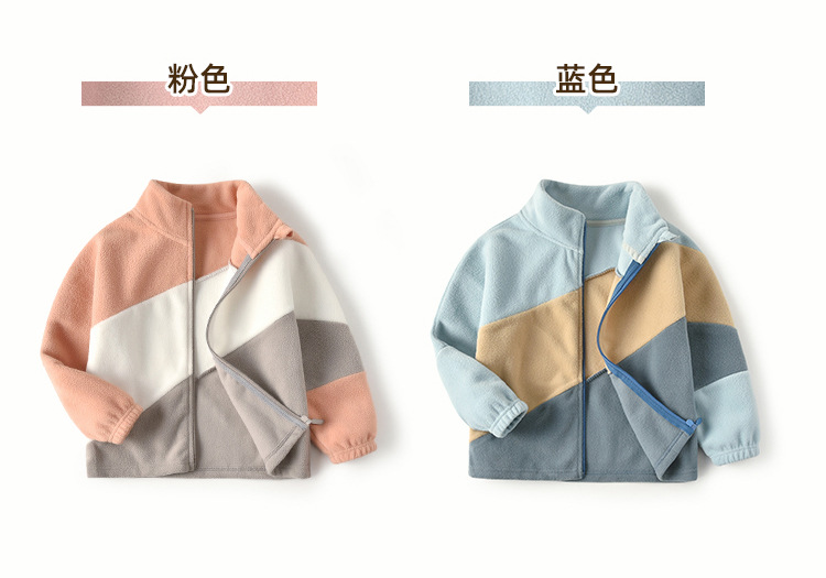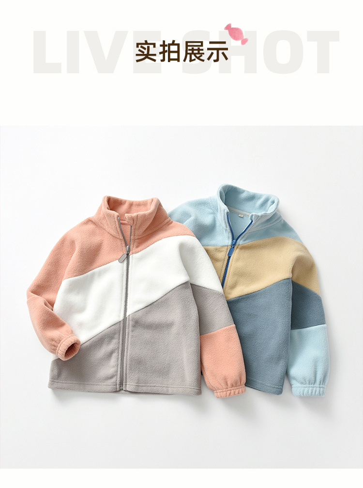 2024 봄과 가을 새로운 어린이 스탠드 칼라 폴라 플리스 자켓 남성과 여성 베이비 컬러 매칭 자켓 얇은 전문 Dropshipping스토어 가기