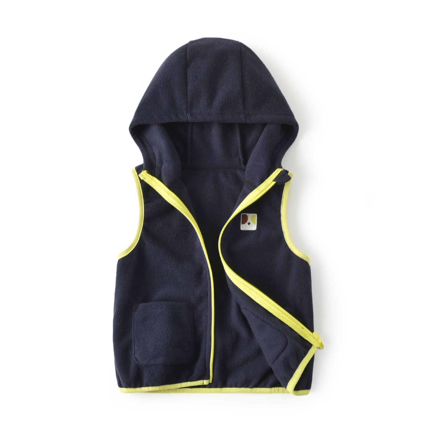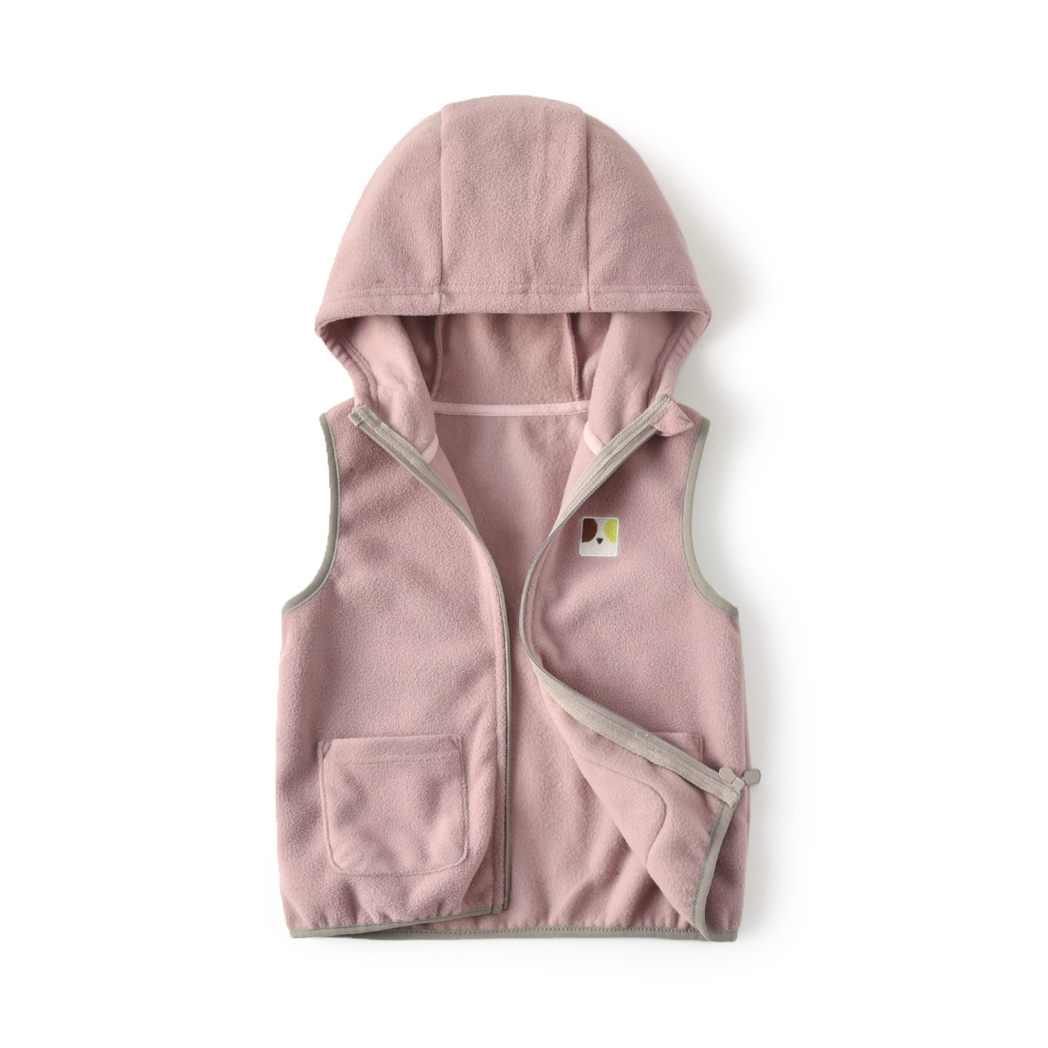 2025 봄 가을 신상품 한국 스타일 단색 아동 후드 조끼 배색 디자인 얇은 폴라 플리스 원피스 도매스토어 가기