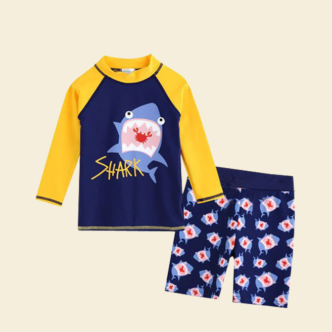 어린이 수영복 소년 수영 트렁크 분할 긴 소매 태양 보호 속건 한국 중형 및 대형 어린이 소년 아기 따뜻한 세트