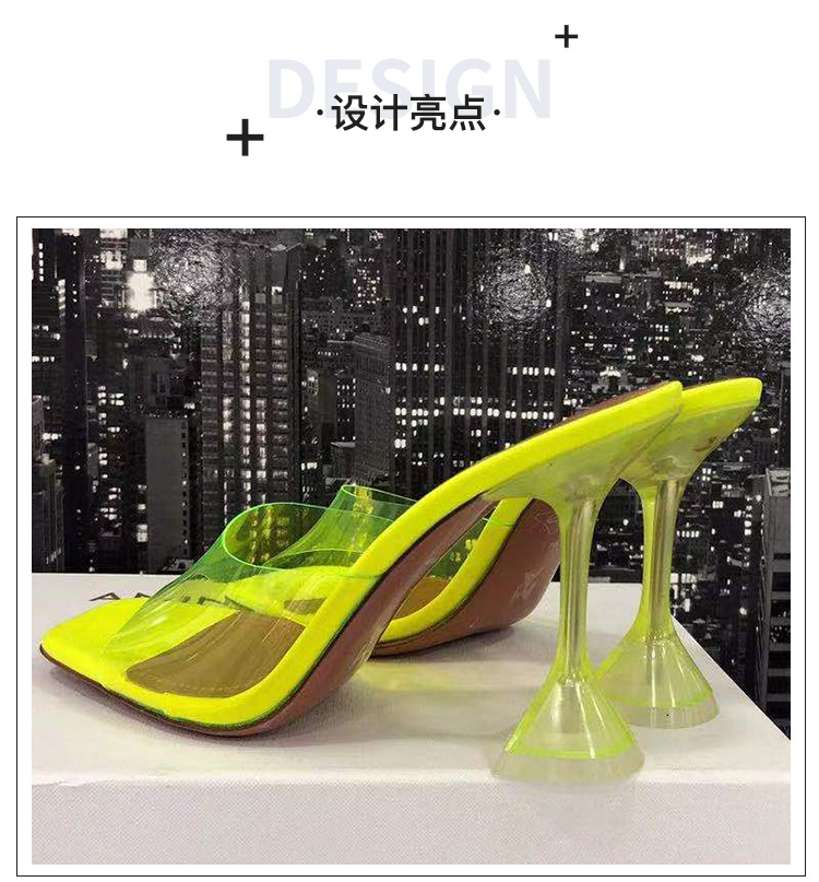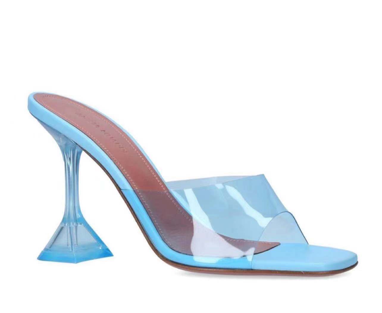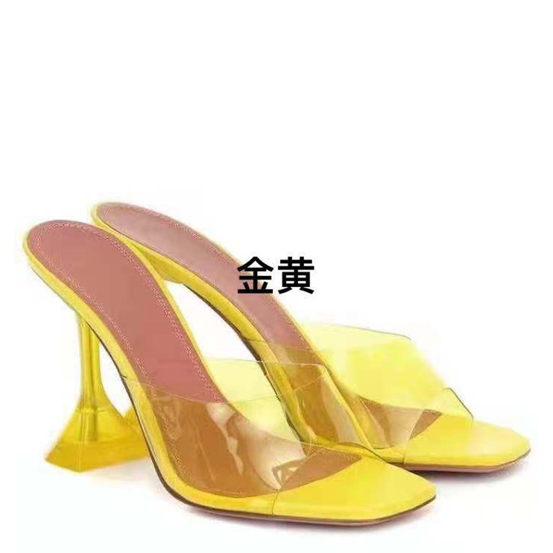 공장 배달 투명 크리스탈 힐 슬리퍼 여성 여름 새로운 Amina 패션 와인 잔 힐 스퀘어 토 패션 샌들