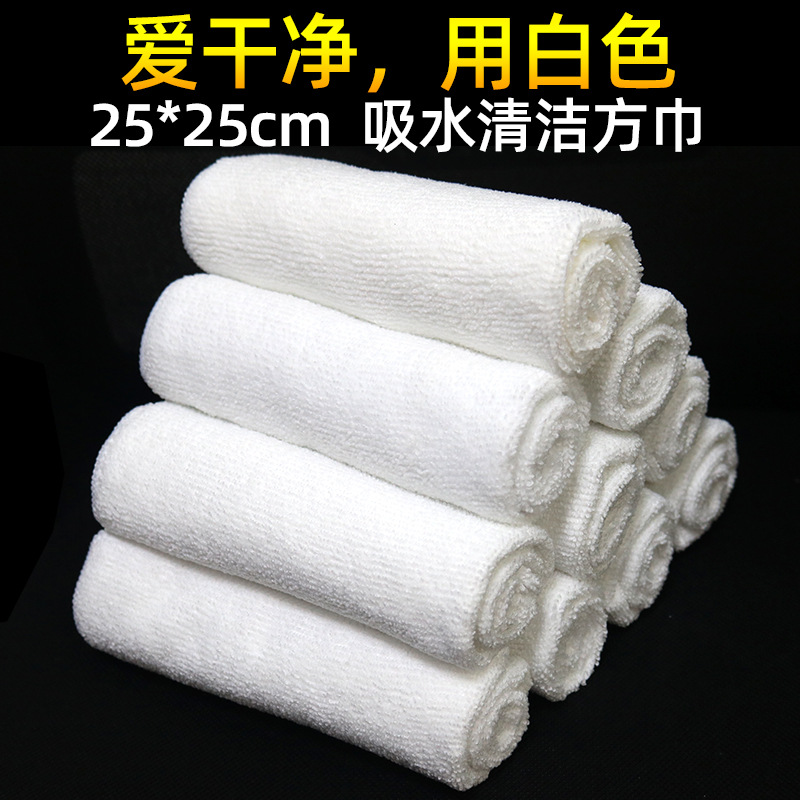이메이지 브랜드 천 도매 25*25 화이트 섬유 흡수성 청소 타월 호텔 상업용 청소 타월