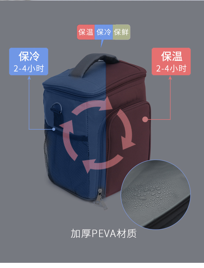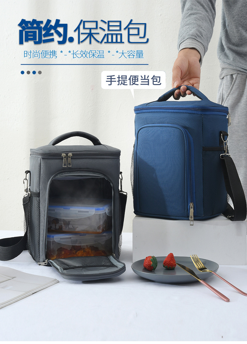 절연 도시락 가방 두꺼운 PEVA 도시락 가방 파티션 다층 핸드백 어깨 스트랩 크로스 바디 손 들고 아마존 국경스토어 가기