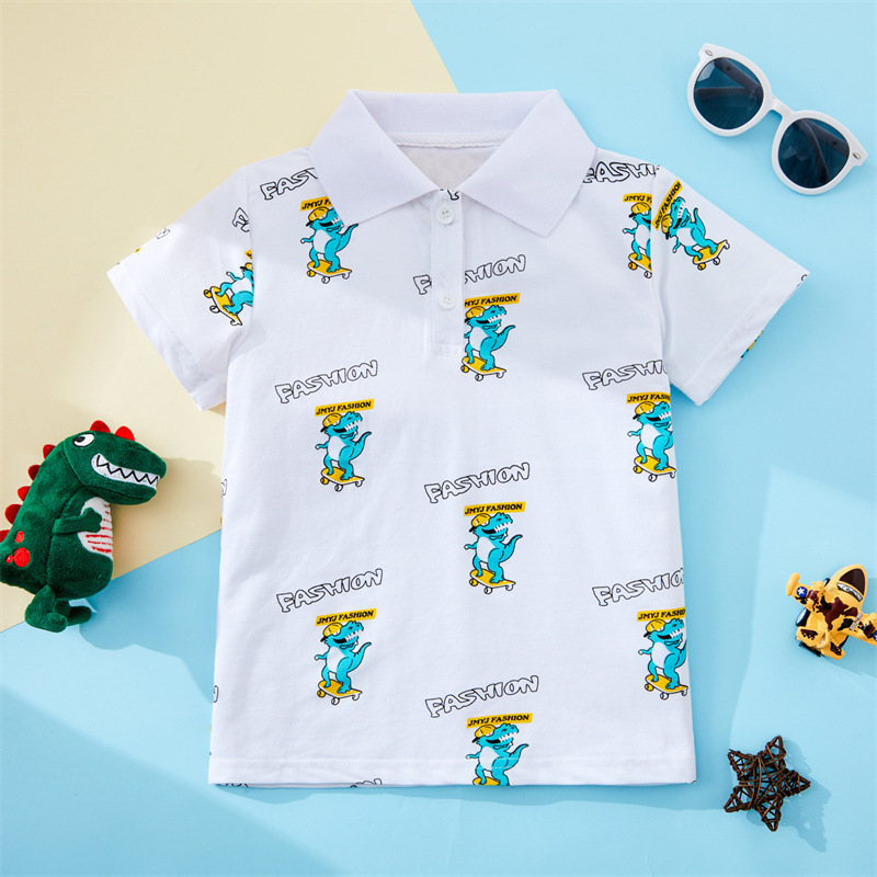 여름 새 소년 화이트 프린트 스쿠터 공룡 옷깃 폴로 셔츠 유행 유행 유행 어린이 유행 탑