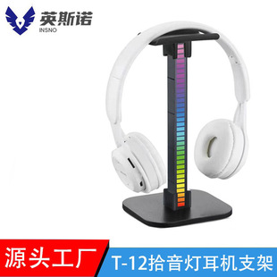 跨境头戴式耳机支架带灯拾音桌面电脑金属展示架挂耳式可拆卸挂架