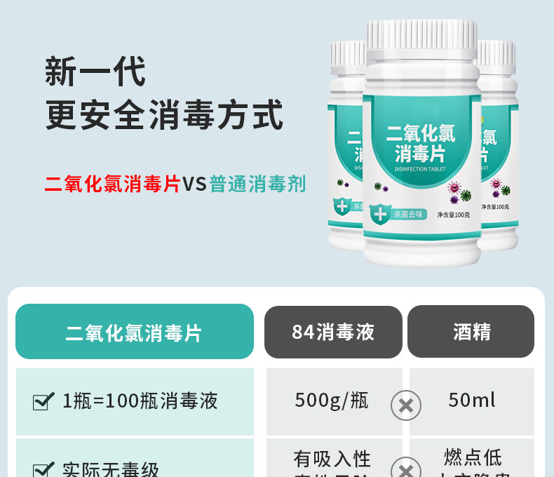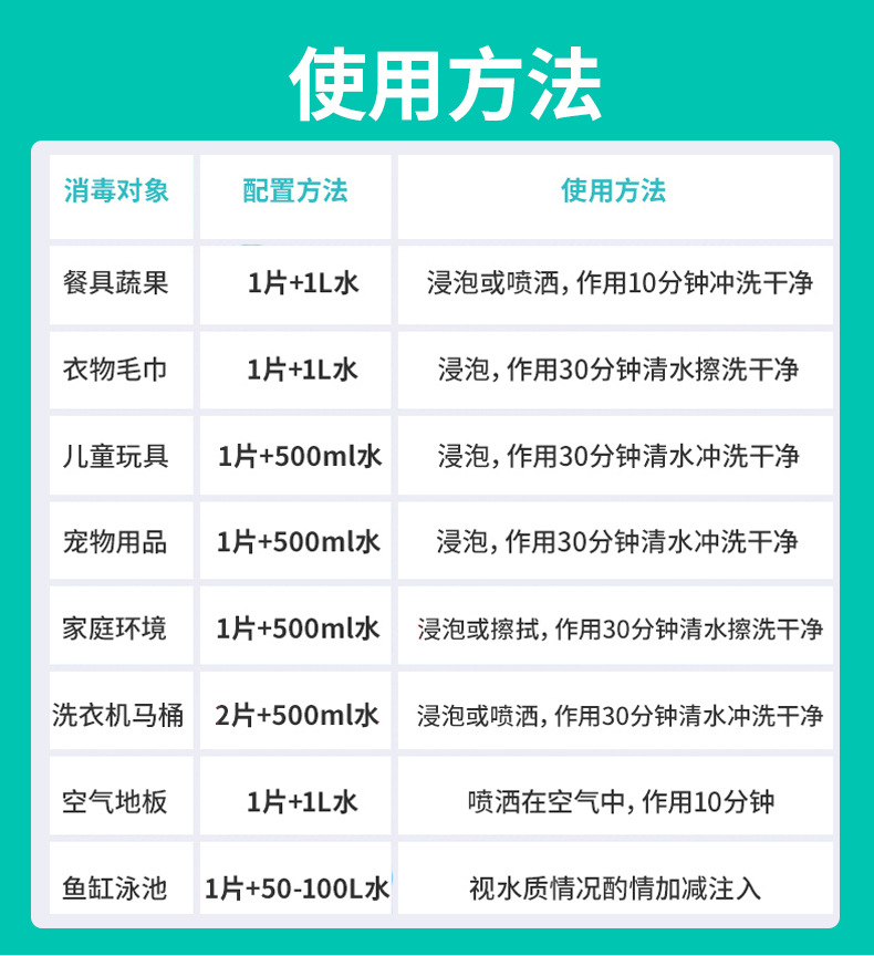 이산화염소 소독정 발포정 식수 식기 식품 물 정화정 어항용 염소 함유 소독제