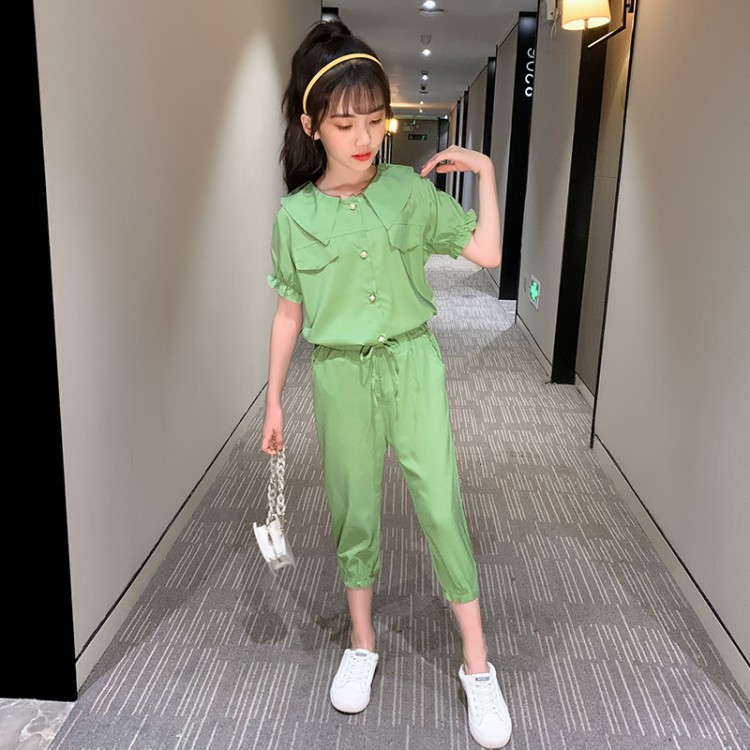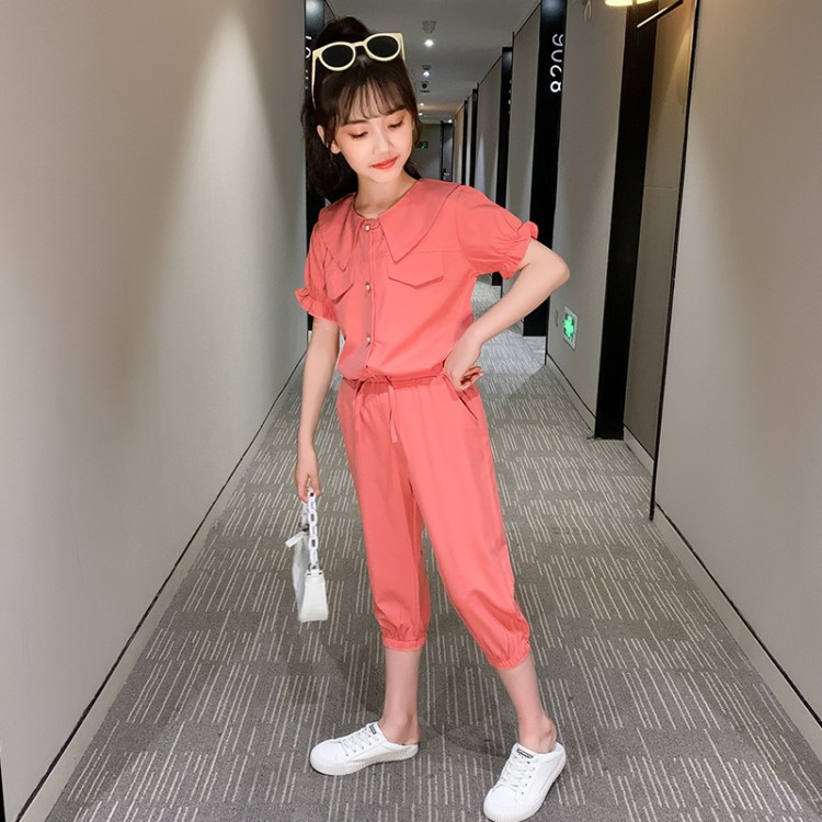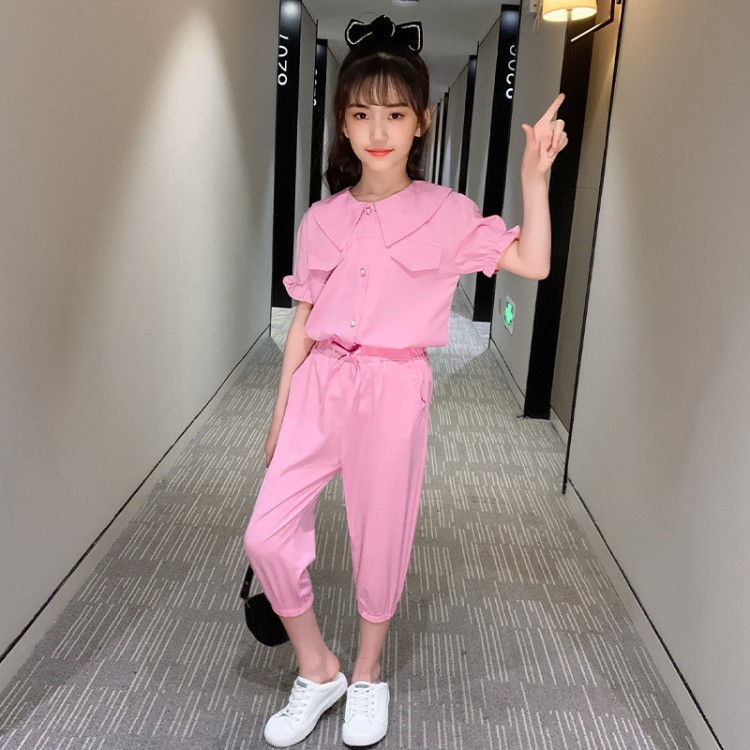 여아 여름옷 세트 2023 새로운 아동 서양식 여름 쉬폰 투피스 세트 아동 반팔 크롭 트렌디 팬츠스토어 가기