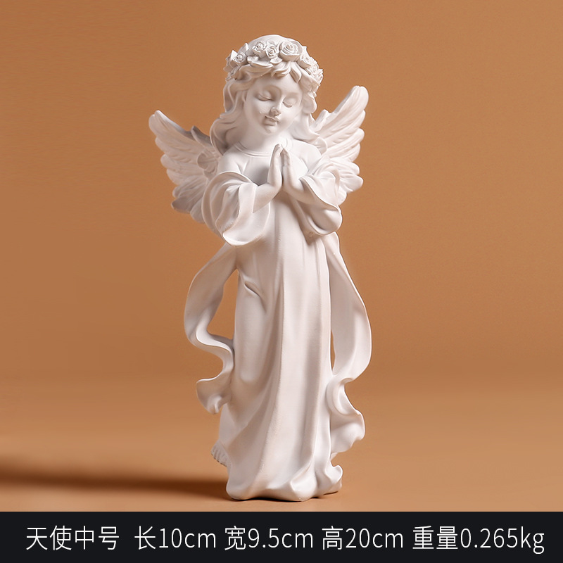 북유럽 귀여운 흰색 천사 수지 조각 장식품 거실 침실 장식 공예 수지 공예 대형