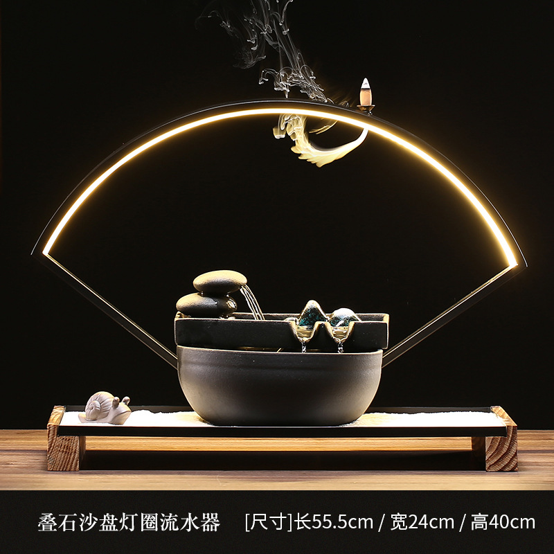 중국 선 흐르는 물 거실 장식 행운의 분수 분지 풍경 역류 향기 홈 오피스 데스크탑 공예스토어 가기